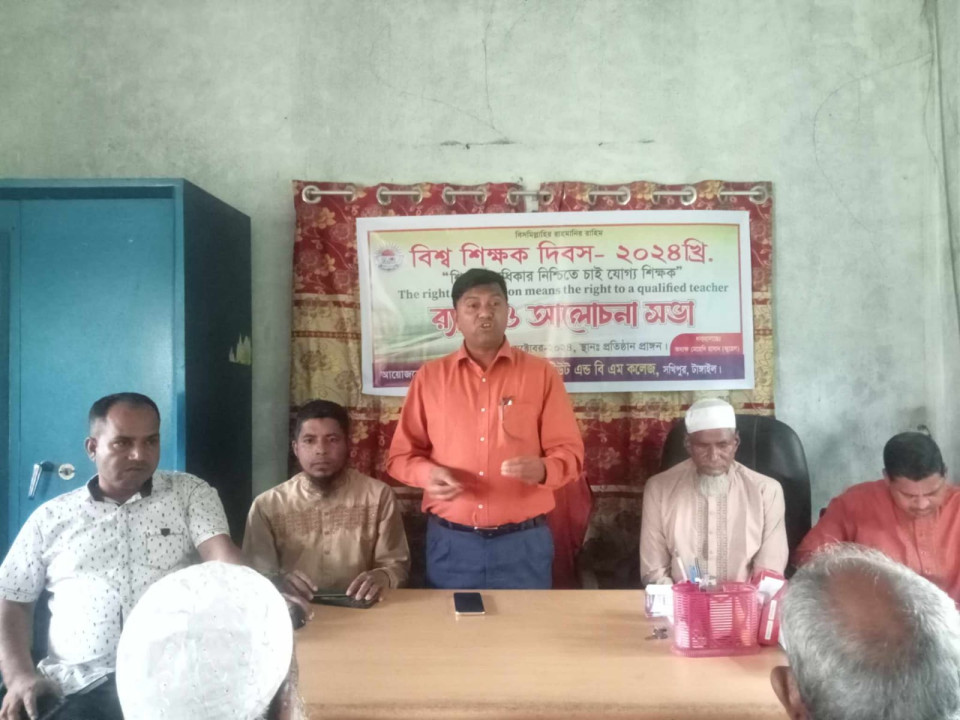 খাঁন আহম্মেদ হৃদয় পাশা, “শিক্ষার অধিকার নিশ্চিতে চাই যোগ্য শিক্ষক”এই স্লোগানকে সামনে রেখে ভূয়াইদ টেকনিক্যাল ইন্সটিটিউট এন্ড বিএম কলেজ এ বিশ্ব শিক্ষক দিবস উদযাপন করা হয়েছে। শনিবার (৫ অক্টোবর) সকাল ১০ টায় কলেজ ক্যাম্পাসে বিশ্ব শিক্ষক দিবস উপলক্ষে এ আলোচনা সভা অনুষ্ঠিত হয়। পরে প্রশাসনিক ভবনের সামনে থেকে শিক্ষক,কর্মচারী ও স্থানীয় নেতৃবৃন্দের সমন্বয়ে একটি র্যালি নিয়ে বিভিন্ন রাস্তা প্রদক্ষিণ করা হয়। আলোচনা সভায় অত্র প্রতিষ্ঠানের প্রতিষ্ঠাতা মোঃ শামসুল হকের সভাপতিত্বে অনুষ্ঠান পরিচালনা করেন,ভূয়াইদ টেকনিক্যাল ইন্সটিটিউট এন্ড বিএম কলেজ এর অধ্যক্ষ মেহেদী হাসান জুয়েল। এসময় প্রধান আলোচক হিসেবে উপস্থিত ছিলেন, সখীপুর উপজেলার সাবেক ভাইস চেয়ারম্যান এস.এম সবুর রেজা। এছাড়াও উপস্থিত ছিলেন, কাকড়াজান ইউনিয়ন বিএনপির সদস্য সচিব মোঃ মোজাম্মেল হক,সখীপুর উপজেলা ছাত্রদলের সাবেক সভাপতি মোঃ নূর-ই আযম,যুবদল নেতা বাহাদুর,মনির সিকদার,৩ নং ওয়ার্ড বিএনপির সভাপতি হায়দার সরকার,সাধারণ সম্পাদক খোদাবক্স ও শিক্ষক/শিক্ষিকাসহ বিভিন্ন ইউনিটির নেতৃবৃন্দ প্রমুখ।