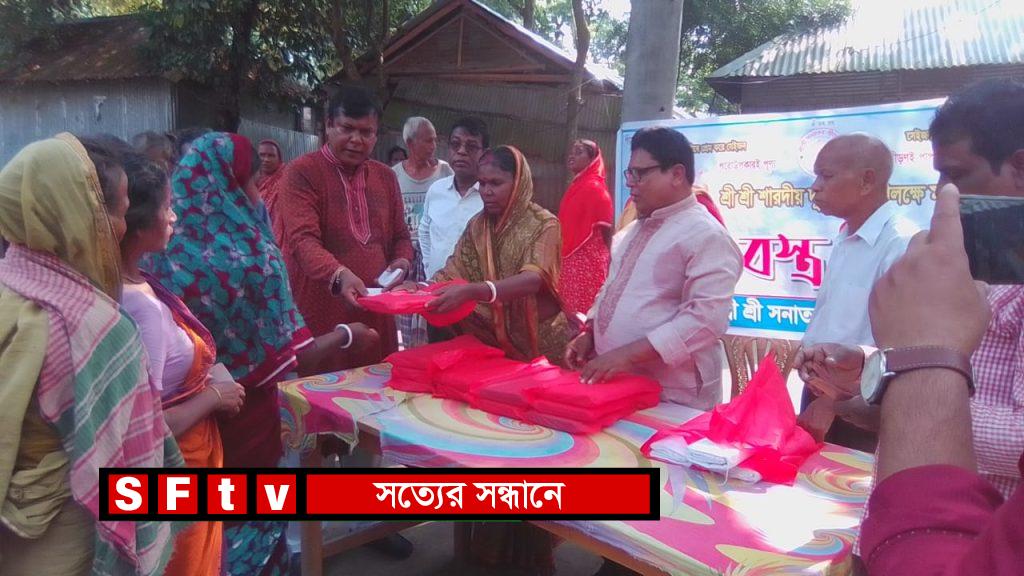 তপন দাস : নীলফামারীতে শারদীয় দূর্গা পূজা উপলক্ষে সনাতন গীতা সংঘের পক্ষ থেকে গরীব অসহায় সনাতনী পরিবারের মাঝে বস্ত্র বিতরণ করা হয়েছে বৃহস্পতিবার বিকেলে নীলফামারীর হরিমন্দির মাঠ প্রাঙ্গনে বস্ত্র বিতরণ করা হয় । এসময় উক্ত ইউনিয়নের বিভিন্ন এলাকা হতে আগত ৩০ জন গরীব অসহায় বিধবা এবং প্রতিবন্ধীর মাঝে এই বস্ত্র বিতরণ করেন সনাতন গীতা সংঘ নীলফামারী জেলা শাখার সভাপতি । এ-সময় সনাতন গীতা সংঘ নীলফামারীর সভাপতি , সাধারণ সম্পাদক , প্রচার সম্পাদক, নটখানা সার্বজনীন রাধা গোবিন্দ হরিমন্দিরের সভা পতি, সাধারণ সম্পাদক, প্রচার সম্পাদক সহ বিভিন্ন ইলেকট্রনিক ও প্রিন্ট মিডিয়ার সাংবাদিক সহ স্হানীয় গণমান্য ব্যক্তিবর্গ উপস্থিত ছিলেন এবং বস্ত্র বিতরণের শুরুতে গীতা পাঠ করা হয়। এবং বস্ত্র বিতরণ শেষ তাদের মধ্যে খাবার বিতরণ করা হয়