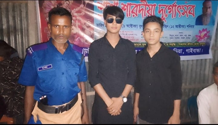 সুন্দরগঞ্জে পুজা মন্ডপে নিরাপত্তা দিচ্ছে ছাত্রদল।