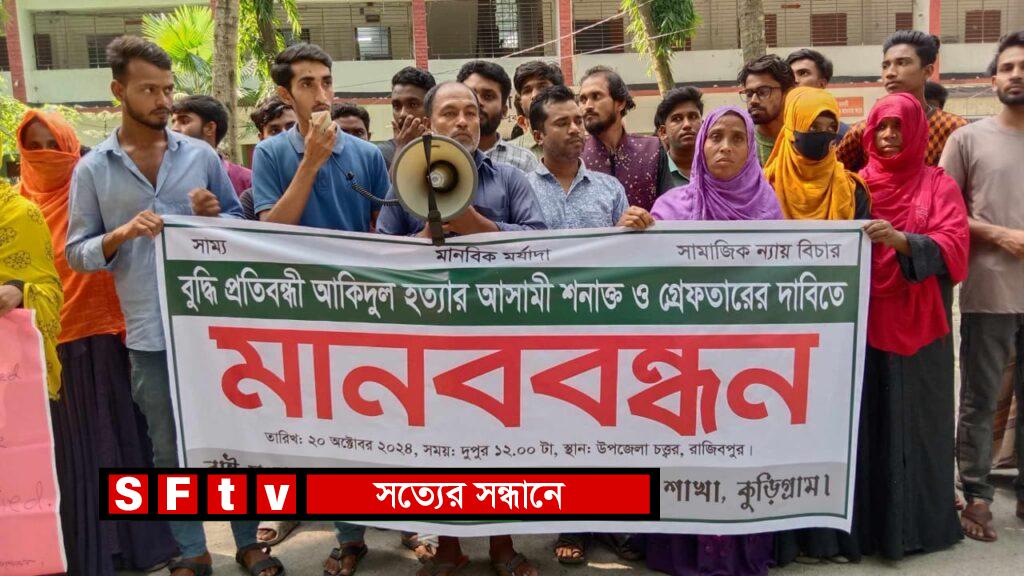 কুড়িগ্রামের রাজিবপুরে হত্যা মামলার আসামি শনাক্ত ও গ্রেফতারের দাবিতে মানববন্ধন