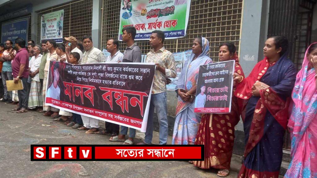 গোমস্তাপুরে নদী থেকে এসএসসি পরীক্ষার্থীর এর লাশ উদ্ধারের ঘটনায় হিন্দু সম্প্রদায়ের মানববন্ধন