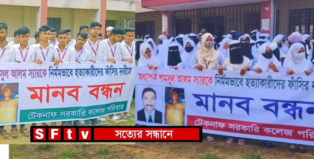 টেকনাফ কলেজ শিক্ষককের হত্যার বিচার নীরবে কাঁদেঃ প্রতিকার চেয়ে মানববন্ধন অনুষ্ঠিত