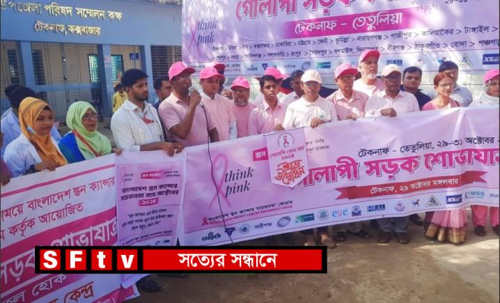 নিজস্ব প্রতিবেদক : গোলাপী সড়ক শোভাযাত্রা টেকনাফ থেকে তেতুলিয়া পর্যন্ত ২৯-৩১অক্টোবর (তিন দিন)সকাল ১১ টায় উপজেলা পরিষদ চত্বরে শুভ উদ্বোধন করা হয়।টেকনাফ উপজেলা নির্বাহী অফিসার মোঃ আদনান চৌধুরীর সভাপতিত্বে অনুষ্ঠিত পথ সভায় উদ্বোধনী স্বাগত বক্তব্য রাখেন, অবসরপ্রাপ্ত সচিব ইকবাল মাহমুদ।স্তন ক্যান্সার সচেতনতা সংক্রান্ত করণীয় বিষয়ে আলোচনা করেন,বাংলাদেশ স্তন ক্যান্সার সচেতনতা ফোরামের প্রধান সমন্বয়কারী অধ্যাপক ডাঃ মোঃ হাবিবুল্লাহ তালুকদার রাসকিন। সভাপতি সমাপনী বক্তব্যে বলেন, ক্যান্সার একটি মরণ ব্যাধী রোগ এবং এ রোগ থেকে নিবারনের উদ্দেশ্যে সকলকে সচেতনতার লক্ষ্যে এ প্রতিষ্ঠানের উদ্যোগ।বাংলাদেশ স্তন ক্যান্সার ফোরাম এর আয়োজিত টেকনাফ থেকে সড়ক শোভাযাত্রা আনুষ্ঠানিকভাবে শুরু হয়। পরে টেকনাফ উপজেলা পরিষদ হয়ে প্রধান সড়ক প্রদক্ষিণ শেষে শোভা যাত্রাটি তেতুলিয়ার উদ্দেশ্যে যাত্রা করে এবং পূর্ব নির্ধারিত স্টেশন সমূহে স্তন ক্যান্সার রোগ বিষয়ে পথসভা করে তেতুলিয়ায় সমাপ্তি ঘটবে। উদ্বোধনী সভায় উপস্থিত ছিলেন, টেকনাফ হেল্থ কমপ্লেক্স অফিসার ডাঃ প্রনয় রুদ্র,উপজেলা প্রকল্প বাস্তবায়ন অফিসার মোঃ হাবিবুর রহমান, উপজেলা সমাজ সেবা অফিসার মোঃ খোরশেদ আলম, উপজেলা বিআরডিবি অফিসার চিন্ময় বড়ুয়া, উপজেলা প্রকৌশলী (এলজিইডি) মোঃ রবিউল হোসাইন, টেকনাফ খাদ্য গুদাম ভারপ্রাপ্ত অফিসার সহ সরকারি বিভিন্ন দপ্তরের অফিসার-কর্মচারীবৃন্দ।