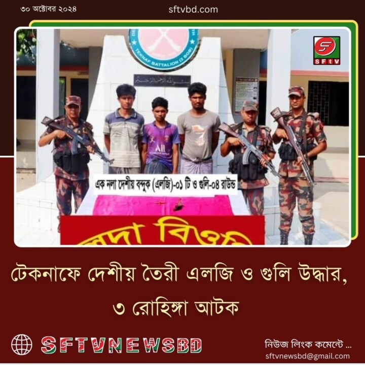 কক্সবাজারের টেকনাফে অভিযান চালিয়ে ১টি দেশীয় তৈরী এলজি এবং ৪ রাউন্ড গুলি উদ্ধার করেছে বর্ডার গার্ড বাংলাদেশ (বিজিবি)। এসময় জড়িত ডাকাতদলের ৩ সদস্যকে আটক করা হয়। আটককৃতরা হলেন,উখিয়া উপজেলার ১৫ নম্বর জামতলি ক্যাম্পের আবু আহমেদের ছেলো এনায়েতুল্লাহ (২৬),একই ক্যাম্পের আব্দুল জব্বারের ছেলে মোহাম্মদ আলম (২৩) ও টেকনাফ উপজেলার হোয়াইক্যং ইউনিয়নের ২২ নম্বর উনচিপ্রাং ক্যাম্পের নূর মোহাম্মদের ছেলে মোহাম্মদ ইয়াছিন(২৯)। টেকনাফ ২বিজিবি ব্যাটালিয়নের অধিনায়ক লেঃ কর্নেল মোঃ মহিউদ্দীন আহমেদ গণমাধ্যমকে।এসব তথ্য নিশ্চিত করেন। তিনি জানান, (৩০ অক্টোবর) বুধবার গোপন তথ্যের ভিত্তিতে টেকনাফ ২বিজিবি ব্যাটালিয়ন এর অধীনস্থ লেদা বিওপি’র দায়িত্বপূর্ণ বিআরএম-১১ হতে আনুমানিক ৫০০ গজ দক্ষিণ-পূর্ব দিকে নাফ নদীর কিনারায় বাংলাদেশ পার্শ্বে লেদা খালেরমুখ থেকে একটি নৌকা দিয়ে কিছু ডাকাত দলের সদস্য টেকনাফ শহরের দিকে গমন করবে। এমন সংবাদের ভিত্তিতে লেদা বিওপি’র একটি চোরাচালান প্রতিরোধ টহলদল লেদা খালেরমুখ এলাকায় গমন করে একটি নৌকা নিয়ে নাফ নদীর কিনারায় কৌশলগত অবস্থান গ্রহণ করে। কিছুক্ষণ পর টহলদল তিনজন সন্দেহভাজন ব্যক্তিকে নাফনদী দিয়ে টেকনাফ শহরের দিকে আসতে দেখে। উক্ত ব্যক্তিদের গতিবিধি সন্দেহ হওয়ায় পূর্ব থেকেই কৌশলগত অবস্থানে থাকা বিজিবি নৌ টহলদল তাদেরকে ঘেরাও করে আটক করতে সক্ষম হয়। পরবর্তীতে উক্ত ব্যক্তিদের তল্লাশী করে তাদের নিকট থেকে ১টি দেশীয় তৈরী এলজি এবং ৪ রাউন্ড গুলি উদ্ধার করা হয়। আটককৃত ব্যক্তিদের জিজ্ঞাসাবাদে জানা যায়, সে বিভিন্ন সময় টেকনাফ এলাকার গুরুত্বপূর্ণ মার্কেট, দোকান এবং বাড়ী-ঘরে ডাকাতি করে থাকে। তিনি আরো জানান,আটককৃত ডাকাত দলের সদস্যদেরকে অস্ত্র ও গোলাবারুদসহ নিয়মিত মামলার মাধ্যমে টেকনাফ মডেল থানায় হস্তান্তর করার কার্যক্রম প্রক্রিয়াধীন রয়েছে।