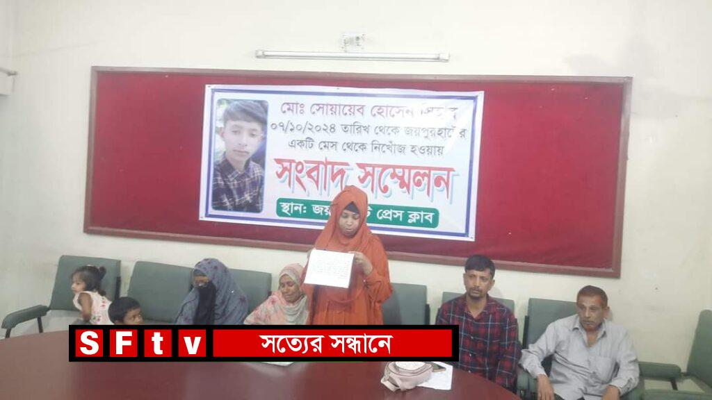 মোঃ আল আমিন : জয়পুরহাটে নিখোঁজের ২৪ দিনেও উদ্ধার হয়নি নবম শ্রেণীর শিক্ষার্থী শিশু সোয়ায়েব হোসেন সিহাব (১৫)। সিহাব জয়পুরহাট সদর উপজেলার পালি গ্রামের ইলেকট্রিক মিস্ত্রি সোহেল রানার ছেলে ও জয়পুরহাট সরকারি টেকনিক্যাল এন্ড কলেজের নবম শ্রেণীর শিক্ষার্থী। নিখোঁজ সিহাবের সন্ধান পেতে আজ বৃহস্পতিবার দুপুরে জয়পুরহাট প্রেসক্লাবে সংবাদ সম্মেলন করেন সিহাবের বাবা সোহেল রানা ও মা লাকি বেগম। এ সময় উপস্থিত ছিলেন সিহাবের নানা আব্দুস সালাম, দুই খালা সেলিনা আক্তার ও পারু আক্তারসহ এলাকার গণ্যমান্য ব্যক্তিবর্গ। সিহাবের বাবা ও মা লিখিত বক্তব্যে জানান, তাদের একমাত্র সন্তান সিহাবকে লেখাপড়ার সুবিধার্থে জয়পুরহাট শহরের একটি ছাত্রাবাসে রেখে লেখাপড়া করাচ্ছিলেন। এ অবস্থায় গত ৭ অক্টোবর রাত ১২ টার পর সিহাব কাউকে কিছু না বলে ছাত্রাবাস থেকে বের হয়ে আর ফিরে যায়নি বলে তারা জেনেছেন। অনেক খোঁজাখুঁজি করেও তাকে পাওয়া না গেলে জয়পুরহাট সদর থানায় একটি সাধারণ ডায়েরি করা হয়। সংবাদ সম্মেলনে বুক চাপড়িয়ে আহাজারি করে লাকি বেগম বলেন , ” আমার একটাই ছেলে সিহাব, আপনারা আমার বাবাকে আমার বুকে এনে দেন। ” জয়পুরহাট সদর থানার অফিসার ইনচার্জ (ওসি) শাহেদ আল মামুন জানান, নিখোঁজ শিশুটিকে উদ্ধারের জন্য ইতিমধ্যে ফুটেজ সংগ্রহ করা হয়েছে ও তথ্য প্রযুক্তির সহায়তা নেওয়া হচ্ছে। অচিরে শিশুটিকে উদ্ধারের সর্বাত্মক চেষ্টা করা হচ্ছে বলেও জানান ওসি।