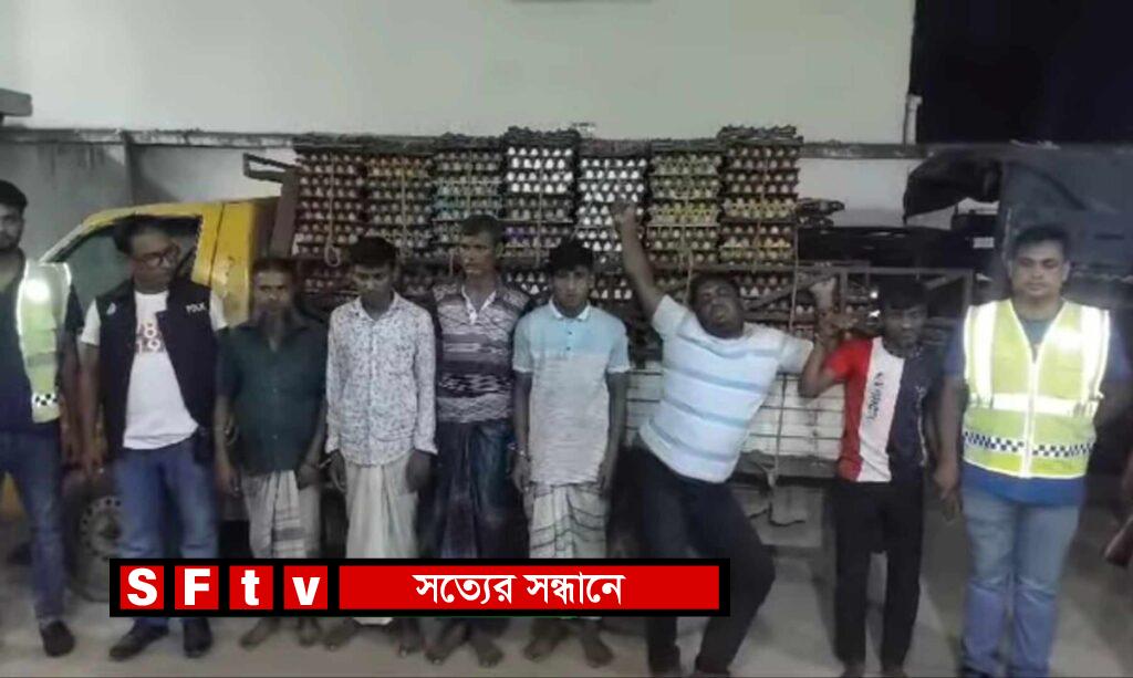 মোঃ মনির মন্ডল সাভারঃ আশুলিয়ায় ডিম ভর্তি একটি পিকআপ ডাকাতির ঘটনায় আন্তঃজেলা ডাকাত দলের ছয় সদস্যকে গ্রেপ্তার করেছে পুলিশ। এ সময় ডাকাতি হওয়া পিকআপসহ ২৮ হাজার ৮০০ পিস ডিম উদ্ধার করা হয়েছে। বৃহস্পতিবার (৩১অক্টোবর) দুপুর ১২টার দিকে আশুলিয়া থানায় এক সংবাদ সম্মেলনে এসব তথ্য জানান আশুলিয়া থানার ভারপ্রাপ্ত কর্মকর্তা (ওসি) আবুবকর সিদ্দিক। এর আগে, বুধবার (৩০ অক্টোবর) আশুলিয়ার টঙ্গাবাড়িসহ বিভিন্ন এলাকায় অভিযান পরিচালনা করে তাদের গ্রেপ্তার করেন এসআই আশরাফুল ইসলাম, এএসআই রেজাউল তালুকদার ও এএসআই মেহেদী হাসান। গ্রেপ্তার আন্তঃজেলা ডাকাত দলের সদস্যরা হলেন- জামালপুর জেলা সদরের কচুনদরা গ্রামের মৃত আবুল হোসেনের ছেলে আব্দুর রহমান ফকির, সিরাজগঞ্জের চৌহালী থানার শৈলজানা গ্রামের আজগর আলী বেপারীর ছেলে মো. মনির বেপারী, গাইবান্ধা জেলার পলাশবাড়ি থানার ছোট ভগবানপুর গ্রামের মৃত নুরুল আকন্দের ছেলে মো. শাহীন আকন্দ, গাইবান্ধা জেলার সাদুল্লাপুর থানার শেরপুর গ্রামের মৃত আনিসুর সোনারের ছেলে মো. সজিব জয় সোনার, একই এলাকার চক ভাগবানপুর গ্রামের মোহাম্মদ আলী সরকারের ছেলে মো. সফি সরকার ও ঝালকাঠি জেলার কাঠালিয়া থানার কাঠালিয়া গ্রামের সাহেব আলী হাওলাদারের ছেলে মো. বাবুল মিয়া। তারা সবাই আন্তঃজেলা ডাকাত দলের সক্রিয় সদস্য বলে নিশ্চিত করেছে পুলিশ।