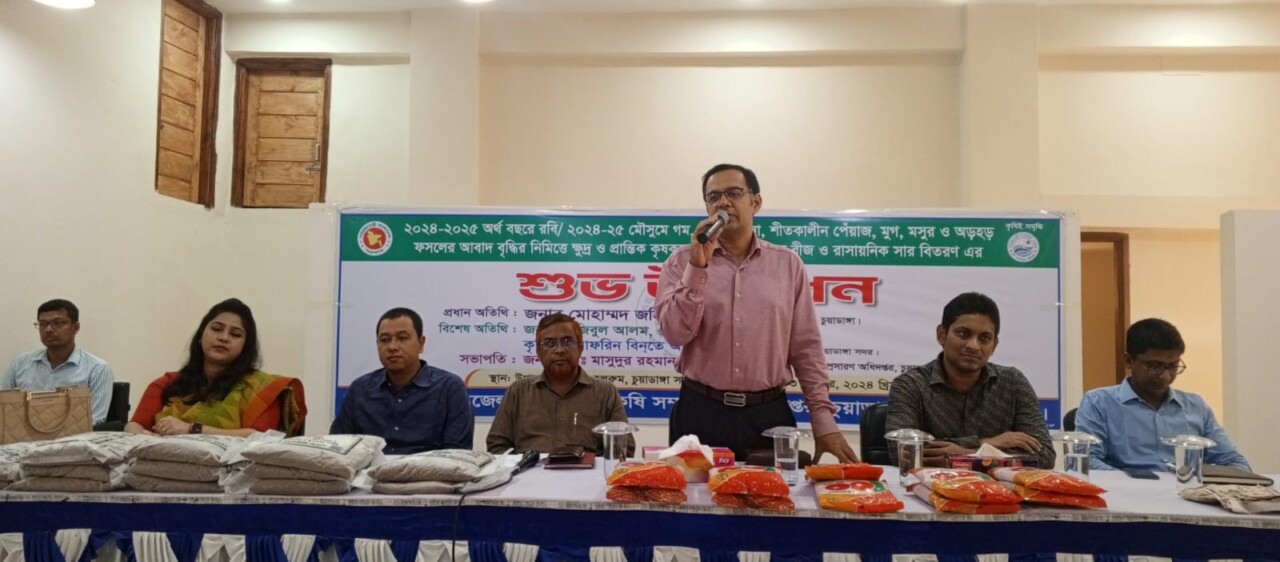 চুয়াডাঙ্গা সদর উপজেলায় রবি প্রণোদনা কর্মসূচি ২০২৪-২৫ এর আওতায় শীতকালীন ফসলের বীজ ও উপকরণ সহায়তার উদ্বোধন করলেন জেলা প্রশাসক মোহাম্মদ জহিরুল ইসলাম।