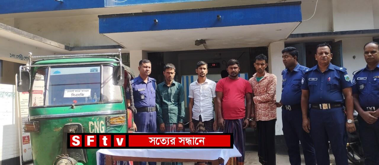 মোঃ তারেক রহমান : ৫টি বাড়ির সবাইকে অচেতন করে গভীর রাতে দুর্ধর্ষ চুরির ঘটনায় জড়িত থাকার দায়ে আন্তঃজেলা চোর চক্রের ৪ জনকে গ্রেফতার করেছে শাহজাদপুর থানা পুলিশ। এসময় চুরি করা ৫ ভরি ২ আনা স্বর্ণালংকার ও মোবাইল ফোন উদ্ধার করা হয়। চুরির কাজে ব্যবহৃত একটি সিএনজি ও সরঞ্জাম জব্দ করা হয়।