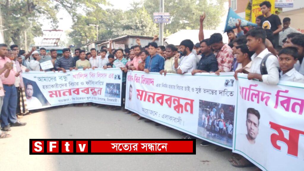 মানববন্ধনে বক্তারা বলেন, গত মঙ্গলবার সকালে নিতাই ইউনিয়নের সাইফোন এলাকার চাড়াল কাটা নদীতে তার মরদেহ পাওয়া যায়। শিক্ষার্থী লিসাদকে পরিকল্পিতভাবে হত্যা করে নদীর পানিতে ফেলে দেওয়া হয়েছে। লিসাদ খুব ভালো ও মেধাবী শিক্ষার্থী ছিলো। সে কখনোই কোন খারাপ কাজের সাথে জড়িত ছিলো না। তাকে কারা হত্যা করেছে আমরা তাদের দ্রুত বিচার চাই। লিসাদের মরদেহ উদ্ধারের তিনদিন হলেও পুলিশ এখনো জড়িত কাউকে গ্রেফতার করতে পারেনি। পুলিশ এবিষয়ে কিছু কাজ করছে না। আমরা লিসাদের হত্যাকারীদের দ্রুত গ্রেফতারের দাবি জানাই। তারা আরও বলেন, আগামী ২৪ ঘন্টার মধ্যে লিসাদ হত্যার সাথে জড়িতদের গ্রেফতার করা না হলে আমরা আরও বড় কর্মসূচী নিব । এসময়ে মানববন্ধনে অংশগ্রহণকারীরা প্লাকার্ড হাতে নিয়ে বিভিন্ন স্লোগান দেন।