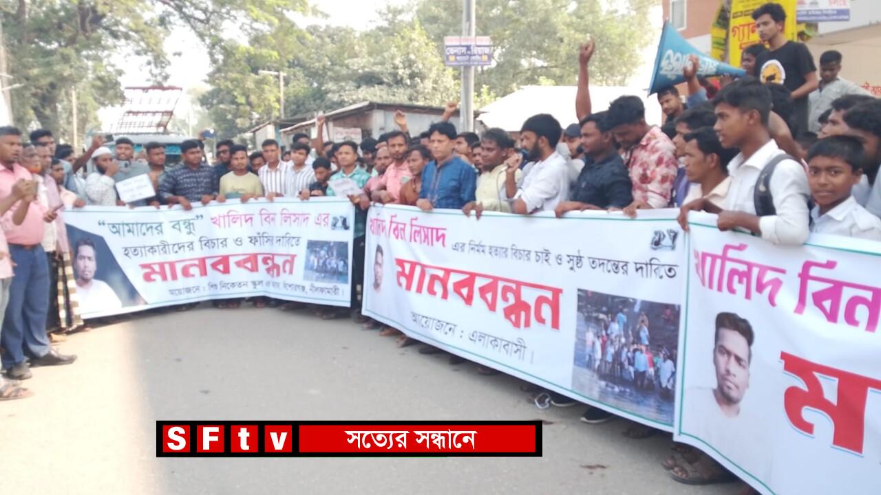 মানববন্ধনে বক্তারা বলেন, গত মঙ্গলবার সকালে নিতাই ইউনিয়নের সাইফোন এলাকার চাড়াল কাটা নদীতে তার মরদেহ পাওয়া যায়। শিক্ষার্থী লিসাদকে পরিকল্পিতভাবে হত্যা করে নদীর পানিতে ফেলে দেওয়া হয়েছে। লিসাদ খুব ভালো ও মেধাবী শিক্ষার্থী ছিলো। সে কখনোই কোন খারাপ কাজের সাথে জড়িত ছিলো না। তাকে কারা হত্যা করেছে আমরা তাদের দ্রুত বিচার চাই। লিসাদের মরদেহ উদ্ধারের তিনদিন হলেও পুলিশ এখনো জড়িত কাউকে গ্রেফতার করতে পারেনি। পুলিশ এবিষয়ে কিছু কাজ করছে না। আমরা লিসাদের হত্যাকারীদের দ্রুত গ্রেফতারের দাবি জানাই। তারা আরও বলেন, আগামী ২৪ ঘন্টার মধ্যে লিসাদ হত্যার সাথে জড়িতদের গ্রেফতার করা না হলে আমরা আরও বড় কর্মসূচী নিব । এসময়ে মানববন্ধনে অংশগ্রহণকারীরা প্লাকার্ড হাতে নিয়ে বিভিন্ন স্লোগান দেন।