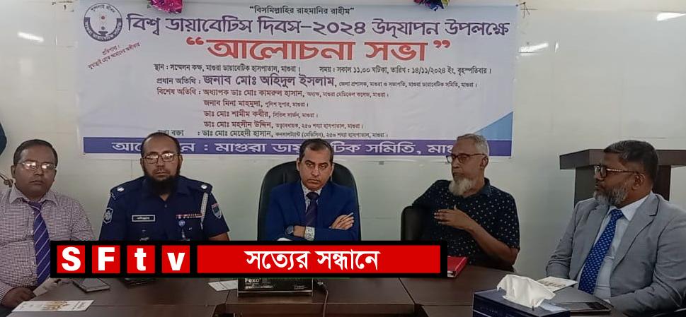 তৌহিদ, : “সুস্বাস্থ্যই হোক আমাদের অঙ্গীকার ” এই প্রতিপাদ্যকে সামনে রেখে মাগুরায় পালিত হলো বিশ্ব ডায়াবেটিস দিবস-২০২৪। মাগুরা ডায়াবেটিক সমিতির আয়োজনে মাগুরা ডায়াবেটিক হাসপাতালের সম্মেলন কক্ষে বৃহস্পতিবার ১৪ নভেম্বর সকাল ১১ টায় দিবসটি উৎযাপণ উপলক্ষে এক আলোচনা সভার আয়োজন করা হয়। আলোচনা সভায় প্রধান অতিথি হিসেবে উপস্থিত ছিলেন, মাগুরা জেলা প্রশাসক ও মাগুরা ডায়াবেটিক সমিতির সভাপতি মোঃ অহিদুল ইসলাম। বিশেষ অতিথি হিসেবে উপস্থিত ছিলেন যথাক্রমে,