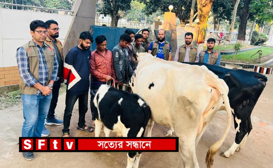 গৌরাঙ্গ বিশ্বাস : টাঙ্গাইল মহাসড়কে সক্রিয় আন্তঃজেলা ০৫ ডাকাত গ্রেফতার, ০৪ টি গরু উদ্ধার। টাঙ্গাইলের পুলিশ সুপারের প্রেস রিলিজ অনুযায়ী ডিবি (উত্তর), টাঙ্গাইল এর একটি চৌকস টিম গত ২২ নভেম্বর ২০২৪ খ্রিঃ গাজীপুর জেলার কোনাবাড়ী ও কালিয়াকৈর থানাধীন বিভিন্ন এলাকায় অভিযান পরিচালনা করে ডাকাত দলের ০৫ সদস্য ১। রাকিব ওরফে রকিব (২৬), ২। মাসুম (২২), ৩। মোঃ রিফাত (২১), ৪। মোঃ ফরহাদ হোসেন (৩৪), ৫। নুর মোহাম্মাদ ওরফে দয়াল (২০)’কে গ্রেফতার করে। গ্রেফতারের পর আসামীদের নিকট হতে প্রাপ্ত তথ্যের ভিত্তিতে ডাকাতিকৃত ৪টি গরু উদ্ধার করা হয়। আসামীরা আন্তঃজেলা ডাকাত দলের সদ্যস্য। মামলার বাদী মোঃ মাহাবুব ইসলাম (২৫) একটি পিকআপ (যার রেজিঃ নং ঢাকা-মেট্রো-ন-১৯-২১৭৪) ভাড়ায় চালিয়ে থাকেন। বাদী ০৩/১১/২০২৪ খ্রিঃ সকাল অনুমান ১১:০০ ঘটিকায় জনৈক মোঃ দৌলোদুজ্জামান (৫৮) এর বিক্রয়কৃত ০১ টি বড় গর্ভবর্তী কালো সাদা রংয়ের গাভী, যার মূল্য ১,৮০,০০০০/- (একলক্ষ আশি হাজার) টাকা ও জনৈক মোঃ আশরাফুল আলম (৪৫) এর ০১টি সাদা কালো রংয়ের বাছুরসহ গাভী, যার মূল্য ৩,১০,০০০/- (তিন লক্ষ দশ হাজার) টাকা গাজীপুর মহানগর এলাকায় পৌঁছে দেয়ার জন্য ভাড়ায় চুক্তিবদ্ধ হন। বাদী চুক্তি অনুযায়ী গত ০৪/১১/২০২৪ খ্রিঃ গরু পৌছে দেয়ার জন্য রওনা হন এবং রাত অনুমান ০১:০০ ঘটিকায় টাঙ্গাইল সদর থানাধীন ঢাকা-টাঙ্গাইল মহাসড়কের মাদারজানী ফুটওভার ব্রীজ হইতে অনুমান ২০ গজ দক্ষিনে ঢাকাগামী মহাসড়কের উপর পৌঁছামাত্রই পিছন থেকে আসা একটি অজ্ঞাত সাদা রংয়ের অজ্ঞাতনামা পিকআপ যোগে অজ্ঞাতনামা ৮/৯ জন ডাকাত বাদীর ট্রাককে থামায় এবং গরুসহ পিকআপটি ডাকাতদের নিয়ন্ত্রণে নিয়ে নেয়। পরবর্তীতে ট্রাকে থাকা বাদীর সহিত লোকজনকে বিভিন্ন জায়গায় হাত পা বেধে ফেলে দিয়ে গরুসহ পিকআপ নিয়ে চলে যায়। বাদী উক্ত বিষয়ে অজ্ঞাতনামা ডাকাতদের বিরুদ্ধে টাঙ্গাইল জেলার সদর থানার মামলা নং-১১, তারিখ-০৫/১১/২০২৪ খ্রিঃ, ধারা-৩৯৫/৩৯৭ পেনাল কোড রুজু হয়। জনাব মোঃ সাইফুল ইসলাম সানতু বিপিএম (সেবা), পুলিশ সুপার, টাঙ্গাইল মামলাটিকে গুরুত্ব বিবেচনায় জেলা গোয়েন্দা শাখা (উত্তর), টাঙ্গাইলকে অধিক গুরুত্ব দিয়ে তদন্তের নির্দেশ প্রদান করেন। মোঃ সাইফুল ইসলাম সানতু, বিপিএম (সেবা), পুলিশ সুপার, টাঙ্গাইল মহোদয়ের যথাসময়ে প্রয়োজনীয় দিক-নির্দেশনায় এবং অতিরিক্ত পুলিশ সুপার (ক্রাইম এন্ড অপস) (পুলিশ সুপার পদে পদোন্নতিপ্রাপ্ত) মোঃ শরফুদ্দিন এর সার্বিক তত্ত্বাবধানে ডিবি (উত্তর), টাঙ্গাইল এর অফিসার ইনচার্জ এবিএমএস দোহা, বিপিএম এর নেতৃত্বে সঙ্গীয় অফিসার এসআই (নিঃ)/মোঃ আহসানুজ্জামান পিপিএম, এসআই (নিঃ)/সুদীপ বাছাড়, এসআই (নিঃ)/মনির হোসেন, এএসআই (নিঃ)/বদলুল আলম ও ফোর্সসহ সফল অভিযানটি পরিচালনা ক