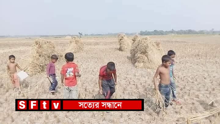 ঝিনাইদহ কালীগঞ্জে মাঠে মাঠে কৃষকের ধান কাটা জমিতে ধান কুড়ানোর আনন্দে মেতেছে গ্রামীণ শিশুরা।
