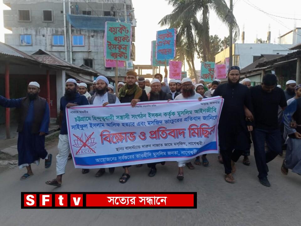 বক্তারা আরও বলেন, আইনজীবী সাইফুলের হত্যাকারী যারাই হোক, অতি দ্রুত সময়ের মধ্যে তাদের গ্রেপ্তার করে বিচারের মুখোমুখি করতে হবে। না হলে তাওহীদ মুসলিমরা আরও বৃহৎ কর্মসূচি দিতে বাধ্য হবে। বিক্ষোভ মিছিল থেকে মুসলমানদের মসজিদ নিরাপত্তা নিশ্চিত করারও দাবি জানানো হয়। পাশাপাশি বাংলাদেশে ইসকনের কার্যক্রম নিষিদ্ধ করার দাবি করেন বক্তারা।
