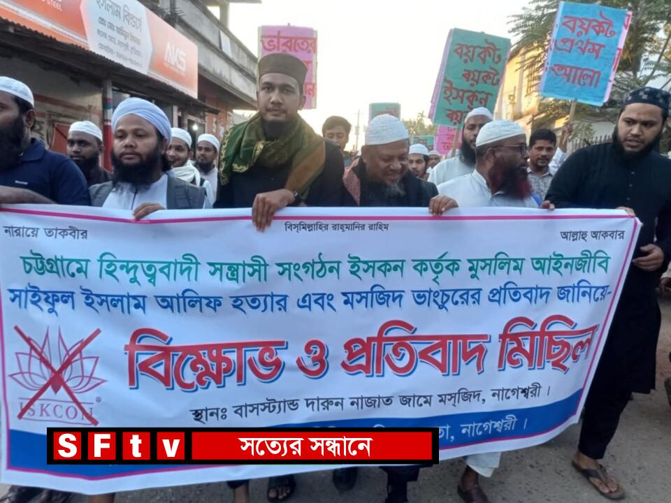 চট্টগ্রামের আইনজীবী সাইফুল ইসলাম আলিফকে হত্যার প্রতিবাদে নাগেশ্বরীতে বিক্ষোভ ও প্রতিবাদ মিছিল হয়েছে। আজ বুধবার বিকাল ৪ টার দিকে নাগেশ্বরী বাসস্ট্যান্ড দারুল নাজাত জামে মসজিদের সামনে থেকে একটি বিক্ষোভ মিছিল বের হয়ে শহরের বিভিন্ন সড়ক প্রদক্ষিণ করে কলেজ মোরে এসে সমাবেশ করে। এতে যোগ দেন নাগেশ্বরীর সর্বস্তরের তাওহীদ মুসলিম।