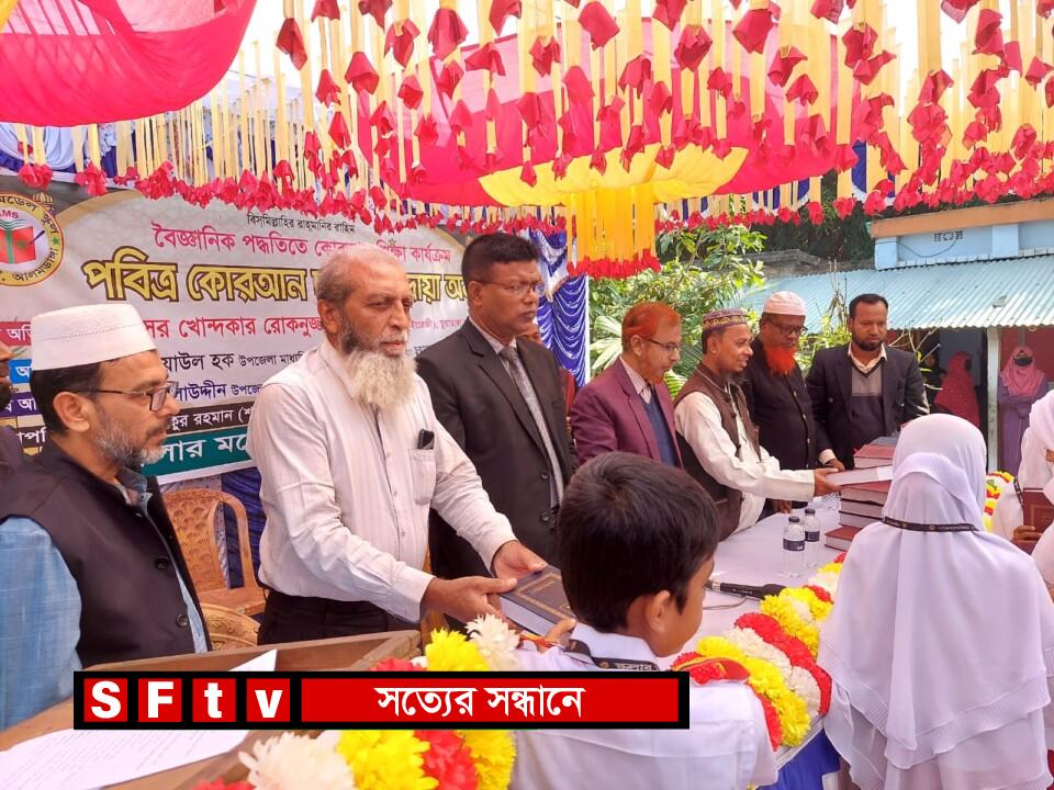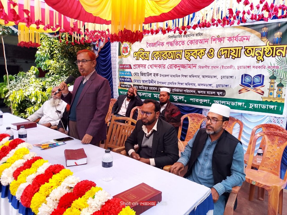 চুয়াডাঙ্গা জেলার আলমডাঙ্গা উপজেলার পারকুলা গ্রামে অবস্থিত স্কলার মডেল স্কুলের শিক্ষার্থীদের প্রতি বছর পাঠ্যপুস্তকের পাশাপাশি বৈজ্ঞানিক পদ্ধতিতে পবিত্র কোরআন পাঠ শেখানো হয়। সেই ধারাবাহিকতায় এ বছরে বিভিন্ন ক্লাস থেকে ৫৫ জন শিক্ষার্থী কোরআন ছবক নেওয়ার জন্য মনোনীত হয়। ছবক নেওয়া শিক্ষার্থী সহ অনান্য শিক্ষার্থীদের উৎসাহ প্রদান ও কোরআন শিক্ষার প্রতি আকৃষ্ঠ করার লক্ষে আজ ৫ ডিসেম্বর বৃহস্পতি বার স্কলার মডেল স্কুলের আঙ্গিনায় একটি বৃহৎ অনুষ্ঠানের আয়োজন করে স্কুলের কতৃপক্ষ। স্কলার মডেল স্কুলের সহকারী শিক্ষক মীর রোকনুজ্জামান এর সঞ্চালনায় ও প্রতিষ্ঠাতা পরিচালক মোঃ আতিকুর রহমান শাহাবুলের সভাপতিত্তে পবিত্র কোরআন ছবক ও দোয়া অনুষ্ঠানে প্রধান অতিথী ছিলেন, চুয়াডাঙ্গা সরকারি কলেজের ইংরেজী বিভাগের বিভাগীয় প্রধান প্রফেসর খন্দকার রোকনুজ্জামান, বিশেষ অতিথী ছিলেন, উপজেলা প্রাথমিক শিক্ষা অফিসার মোহাঃ আলাউদ্দীন, আলমডাঙ্গা মহিলা ডিগ্রী কলেজের ইংরেজী প্রভাষক মোঃ শফিউল আলম বকুল, ভেদামারি-পাঁচবাড়ীয়া আলিম মাদ্রাসার অধ্যক্ষ আলহাজ্জ মাওলানা মোহাম্মদ আলী, উপজেলা একাডেমিক সুপারভাইজার মোঃ ইমরুল হক, ইসলামিক ফাউন্ডেশন চুয়াডাঙ্গা জেলা শাখার ফিল্ড অফিসার মোঃ মজিবর রহমান, আন্দুলবাড়ীয়া বহুমুখী মাধ্যমিক বালিকা বিদ্যালয়ের অবসরপ্রাপ্ত প্রধান শিক্ষক আব্দুল মান্নান, পারকুলা মোনাকষা সরকারি প্রাথমিক বিদ্যালয়ের সহকারী শিক্ষক মোঃ মাসুদ রানা সহ শিক্ষার্থীদের অভিভাবক ও এলাকার গণ্যমান্য ব্যাক্তিবর্গ। অনুষ্ঠানে বক্তারা স্কলার মডেল স্কুলের প্রতিষ্ঠাতা পরিচালক মোঃ আতিকুর রহমান শাহাবুল ও ধর্মীয় শিক্ষক ক্বারী মোঃ জুয়েল রানার প্রসংশা করে বলেন, পাঠ্যপুস্তকের পাশাপাশি ধর্মীয় শিক্ষার প্রতি এতো গুরুত্বারোপ বর্তমান সময়ে অনেক শিক্ষা প্রতিষ্ঠান থেকেই আলাদা। ইসলামিক ফাউন্ডেশন চুয়াডাঙ্গার পক্ষ থেকে ছবক নেওয়া প্রত্যেক শিক্ষার্থীদের কোরআন উপহার দেন কতৃপক্ষ। অনুষ্ঠান শেষে দোয়া ও মোনাজাত পরিচালনা করেন আলহাজ্ব মাওলানা মোহাম্মদ আলী।