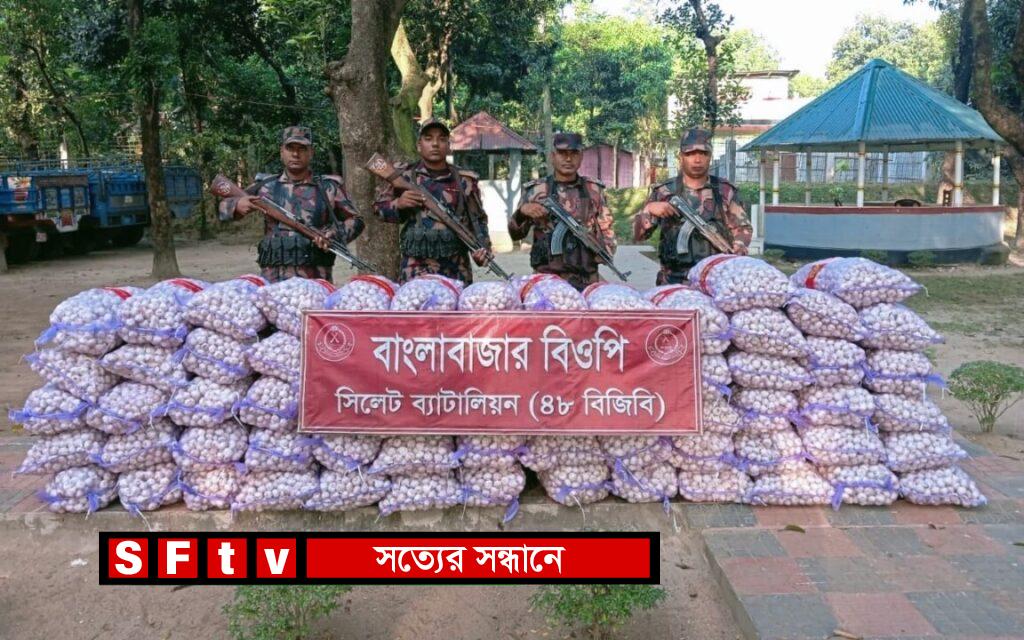 মো. শাহীন আলম : সিলেট ব্যাটালিয়ন (৪৮ বিজিবি) এর দায়িত্বাধীন সিলেট এবং সুনামগঞ্জ জেলার সীমান্তবর্তী এলাকা বাংলাবাজার, সোনালী চেলা, সংগ্রাম, তামাবিল, পান্থুমাই, বিছনাকান্দি এবং কালাইরাগ এলাকায় বিজিবির অভিযানে বিপুল পরিমান ভারতীয় কমলা, চিনি, সাবান, চকলেট, পোস্ত দানা, গরু, শীতের কম্বল, মদ বাংলাদেশ হতে পাচারকালে বিপুল পরিমান রসুন, চোরাচালানী মালামাল পরিবহনে ব্যবহৃত ট্রাক এবং অবৈধভাবে পাথর উত্তোলনকারী নৌকা আটক করা হয়। আটককৃত মালামালের সিজার মূল্য-১,৪৯,২৯,১০০.০০ (এক কোটি উনপঞ্চাশ লক্ষ উনত্রিশ হাজার একশত) টাকা। সোমবার সকালে এক প্রেস বিজ্ঞপ্তিতে সিলেট ব্যাটালিয়ন (৪৮ বিজিবি) এর অধিনায়ক লেফটেন্যান্ট কর্নেল মোঃ হাফিজুর রহমান, পিএসসি জানান, উর্ধ্বতন সদরের নির্দেশনা অনুযায়ী সীমান্তে নিরাপত্তা রক্ষা ও চোরাচালান প্রতিরোধে বিজিবি’র আভিযানিক কার্যক্রম ও গোয়েন্দা তৎপরতা সর্বোতভাবে অব্যাহত রয়েছে। এরই ধারাবাহিকতায় সীমান্তবর্তী এলাকায় অভিযান পরিচালনা করে চোরাই পথে পাচার করা মালামাল জব্দ করা হয়। আটককৃত চোরাই পণ্য সমূহের বিধি মোতাবেক প্রয়োজনীয় ব্যবস্থা গ্রহণ করা হবে।