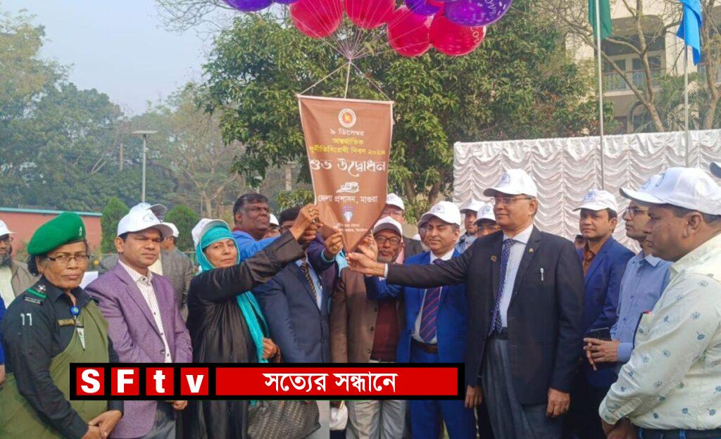 তৌহিদ : ‘দুর্নীতির বিরুদ্ধে তারুণ্যের একতা : গড়বে আগামীর শুদ্ধতা’ প্রতিপাদ্যে মাগুরায় নানা কর্মসূচির মধ্য দিয়ে আন্তর্জাতিক দুর্নীতি বিরোধী দিবস উদযাপন করা হয়েছে।এ উপলক্ষে সোমবার (৯ ডিসেম্বর) সকালে জেলা দুর্নীতি দমন কমিশন ও জেলা দুর্নীতি প্রতিরোধ কমিটির উদ্যোগে ও জেলা প্রশাসনের আয়োজনে জাতীয় সংগীতের সঙ্গে পতাকা উত্তোলন এবং বেলুন উড়িয়ে কর্মসূচির উদ্বোধন করেন মাগুরা জেলা প্রশাসক মোঃ অহিদুল ইসলাম, সেইসাথে জেলা প্রশাসকের কার্যালয়ের সামনে দুর্নীতি বিরোধী মানববন্ধন কর্মসূচি পালন করা হয়। পরে জেলা প্রশাসকের কার্যালয়ের সম্মেলন কক্ষ (চাঁদের হাট) এ দুর্নীতি বিরোধী আলোচনা সভা অনুষ্ঠিত হয়।