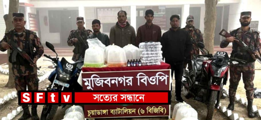 মোঃ মুনাইম হোসেন : চুয়াডাঙ্গা-৬ বিজিবি দামুড়হুদার সুলতানপুর মুন্সিপাড়া, হুদাপাড়া, বারাদি এবং মুজিবনগর সীমান্ত এলাকায় এ অভিযান চালায়। এ সময় উদ্ধার করা হয় ভারতীয় ৩৮৯ বোতল ফেন্সিডিল, ২ কেজি গাঁজা, ৫০ বোতল মদ, ৬২৬ পিস ভারতীয় ইনজেকশন, ৭৫০ পিস ভারতীয় অ্যাকুরিয়ামের বিভিন্ন রংয়ের মাছ, দুটি মোটরসাইকেল, ৩টি মোবাইল ফোন এবং ৬টি সিম। আটককৃতরা হচ্ছেন আনন্দবাস গ্রামের রিয়াজ মল্লিকের ছেলে জাকির হোসেন (৩২), মৃত নুর বক্সের ছেলে লাল্টু (৩৫), জহির উদ্দিনের ছেলে মানিক খা (২০) ও মাঝপাড়া গ্রামের লুৎফর রহমানের ছেলে এনামুল হক (৩৫)। আটককৃতদের বিরুদ্ধে মামলাসহ সংশ্লিষ্ট থানায় হস্তান্তর করা হয়েছে। ৬-বিজিবি চুয়াডাঙ্গা ব্যাটালিয়নের পরিচালক সাঈদ মোহাম্মদ জাহিদুর রহমান জানান, সীমান্ত এলাকা দিয়ে চোরাচালানিরা বিভিন্ন মালামাল অবৈধভাবে পাচার করছে মর্মে অভিযান চালানো হয়। এ সময় চারজনকে আটক করা হয় ও মালামাল উদ্ধার করা হয়। আটককৃত ব্যক্তিদের বিরুদ্ধে অবৈধ চোরাচালানি মালামাল বহনের দায়ে মামলা দায়ের পূর্বক মুজিবনগর থানায় হস্তান্তর করা হয়েছে।