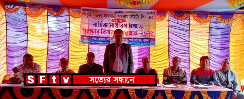 এম জালাল উদ্দীন : পাইকগাছায় নতুন বাজার ব্যবসায়ী সমবায় সমিতি লিঃ এর বার্ষিক সাধারণ সভা অনুষ্ঠিত হয়েছে। ১৪ ডিসেম্বর শনিবার সকাল ১১ টায় নতুন বাজার চত্বরে অনুষ্ঠিত সাধারণ সভায় সভাপতিত্ব করেন, সমবায় সমিতির সভাপতি অশোক কুমার ঘোষ। সমিতির সম্পাদক প্রভাষক আবু ছালেহ মোঃ ইকবাল এর পরিচালনায় বক্তব্য রাখেন, সাবেক ব্যাংকার প্রজিৎ রায়, সমিতির সাবেক সম্পাদক সাংবাদিক প্রকাশ ঘোষ বিধান, সহ-সভাপতি জগন্নাথ দেবনাথ, কোষাধ্যক্ষ নারায়ণ দেবনাথ, শেখ সোহেল আহম্মেদ, অধ্যাপক শ্যামল দেবনাথ, প্রভাষক এস রোহাতাব উদ্দিন আহম্মেদ, বিমল ঘোষ, নাসির উদ্দিন, শংকর দেবনাথ, বাবুল সরদার, হরিপদ মণ্ডল, মিজানুর রহমান, বিল্লাল বিশ্বাস,সজ্ঞিত ঘোষ, সুভাষ দেবনাথ, শংকর মল্লিক, ইমরান হোসেন প্রমুখ।