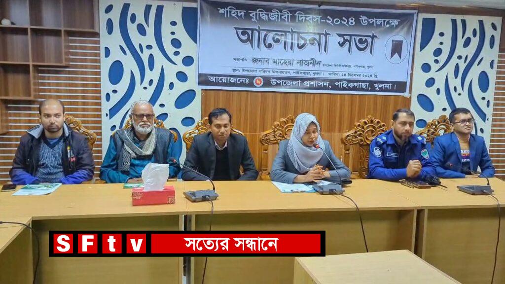 এম জালাল উদ্দীন : পাইকগাছায় শহিদ বুদ্ধিজীবী দিবস উদযাপন উপলক্ষে শহীদদের রুহের মাগফেরাত কামনায় দোয়া মাহফিল, ফুলের শ্রদ্ধাঞ্জলী সহ আলোচনা সভা অনুষ্ঠিত হয়েছে। শনিবার সকাল ১১ টায় উপজেলা পরিষদ মিলনায়তনে উপজেলা প্রশাসন কর্তৃক আয়োজিত আলোচনা সভায় সভাপতিত্ব করেন, উপজেলা নির্বাহী অফিসার মাহেরা নাজনীন। শহীদ বুদ্ধিজীবী দিবসের উপর বক্তব্য রাখেন, সহকারী কমিশনার ভূমি মোঃ ইফতেখারুল ইসলাম শামীম, ওসি মোঃ সবজেল হোসেন, উপজেলা সিনিয়র মৎস্য কর্মকর্তা সৈকত মল্লিক, ইউপি চেয়ারম্যান বীরমুক্তিযোদ্ধা আবুল কালাম আজাদ, ডাঃ ইব্রাহিম গাজী।
