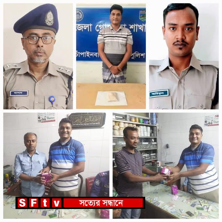সামাজিক যোগাযোগ মাধ্যম ফেসবুকে ভাইরাল হওয়া দুটি ছবিতে দেখা যায়, ৪-৫টি মাদক মামলার আসামী চাঁপাইনবাবগঞ্জের সীমান্তবর্তী চরবাগডাঙ্গা এলাকার অন্যতম শীর্ষ হেরোইন কারবারি মিজানুর রহমান ওরফে মিজানের থেকে উপহার গ্রহণ করছেন, মাদকদ্রব্য নিয়ন্ত্রণ অধিদপ্তর চাঁপাইনবাবগঞ্জ জেলা কার্যালয়ের উপ-পরিদর্শক (এসআই) মো. আসাদুর রহমান ও সিপাই মো. আরিফুল ইসলাম। লাল প্যাকেটে মোড়ানো উপহার নেয়ার ছবি তোলা হয়েছে মাদক ব্যবসায়ী মিজানুর রহমান মিজানের ব্যবসায় প্রতিষ্ঠান জেলা শহরের বিশ্বরোড এলাকায় এমজে ট্রেডার্সের একটি এসএস পাইপ ও স্টিলের ওয়ার্কসপে। এদিকে, মাদকদ্রব্য নিয়ন্ত্রণ অধিদপ্তরের উপ-পরিদর্শক (এসআই) মো. আসাদুর রহমানের সাথে তোলা ছবিতে পাশের চেয়ারে বসে থাকতে দেখা যায় এক পুলিশ সদস্যকে। তবে সেই পুলিশ সদস্যের নাম-পরিচয় নিশ্চিত হওয়া যায়নি। ছবি তোলার সময় মাদকদ্রব্য নিয়ন্ত্রণ অধিদপ্তরের এসআই আসাদুর রহমান ও সিপাই আরিফুল ইসলামের সাথে মাদক ব্যবসায়ী মিজানের ছবি তোলার সময় উভয়কেই ক্যামেরার দিকে তাকাতে দেখা যায়।