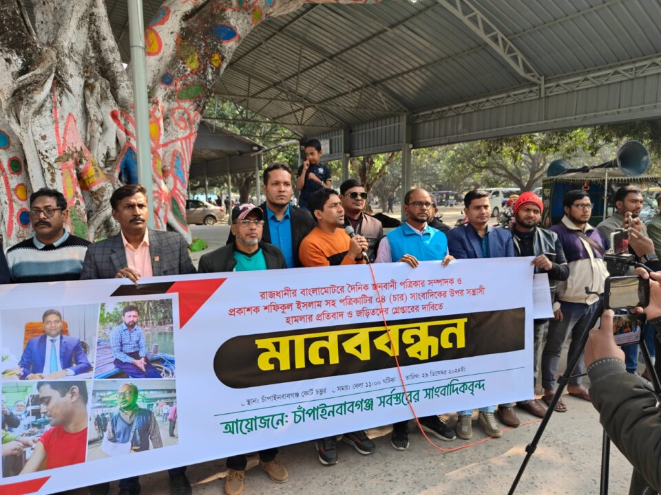 জনবাণীর সম্পাদকসহ ৪ সাংবাদিকের ওপর হামলার প্রতিবাদে চাঁপাইনবাবগঞ্জে মানববন্ধন
