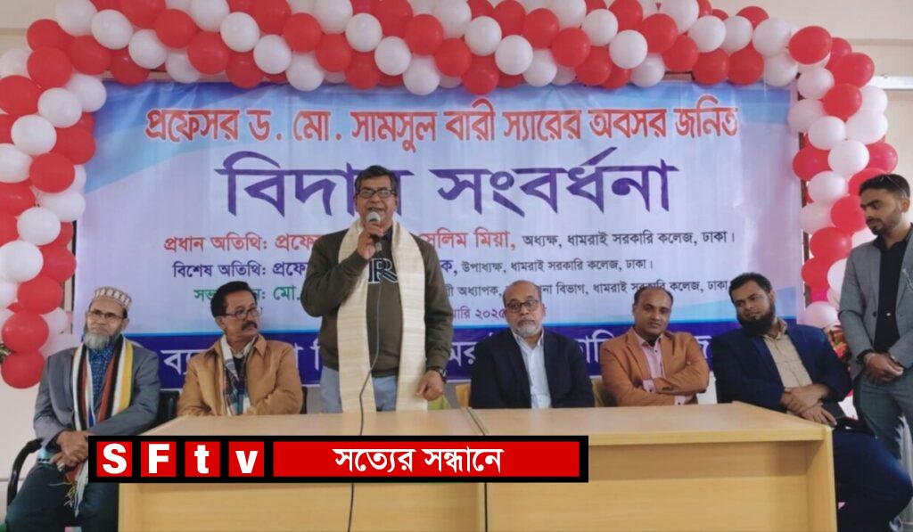 বুধবার ( পহেলা জানুয়ারি) দিনব্যাপী ধামরাই সরকারি কলেজের ব্যবস্থাপনা বিভাগের আয়োজনে এ প্রফেসরকে বিদায়ী সংবর্ধনা দিয়েছেন শিক্ষকমন্ডলী ও শিক্ষার্থীরা।