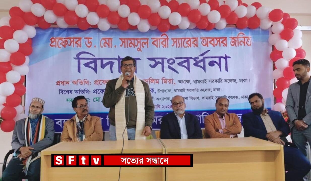 বুধবার ( পহেলা জানুয়ারি) দিনব্যাপী ধামরাই সরকারি কলেজের ব্যবস্থাপনা বিভাগের আয়োজনে এ প্রফেসরকে বিদায়ী সংবর্ধনা দিয়েছেন শিক্ষকমন্ডলী ও শিক্ষার্থীরা।