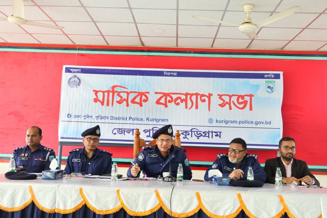 কুড়িগ্রাম জেলার নাগরিকদের নিরাপত্তা প্রদান এবং নাগরিক সেবাকে আরো ত্বরান্বিত করতে জেলা পুলিশের অভ্যন্তরীন শৃঙ্খলা, দক্ষতা, পেশাদারিত্ব ও কল্যাণের নিমিত্তে কুড়িগ্রাম জেলা পুলিশের মাস্টার প্যারেড, কিট প্যারেড, মসিক কল্যাণ সভা ও আইন শৃঙ্খলা ও অপরাধ পর্যালোচনা সভা অনুষ্ঠিত হয়।অদ্য ০৭ জানুয়ারি ২০২৫ তারিখ দিনের শুরুতেই সকাল ৮:০০ ঘটিকায় কুড়িগ্রাম পুলিশ লাইন্স মাঠে জেলা পুলিশের মাস্টার প্যারেড অনুষ্ঠিত হয়। মাস্টার প্যরেডে প্যারেড পরিদর্শন ও অভিবাদন গ্রহণ করেন পুলিশ সুপার মোঃ মাহফুজুর রহমান।মাস্টার প্যারেড শেষে জেলা পুলিশের কিট প্যারেড অনুষ্ঠিত হয়। কিট প্যারেডে পুলিশ সুপার মহোদয় সরকারি ভিভিন্ন মালামাল পরিদর্শন ও সুষ্ঠু ভাবে বিতরণের লক্ষে বিভিন্ন নির্দেশনা প্রদান করেন।কিট প্যারেড শেষে পুলিশ সুপার মহোদয় রেশন স্টোর পরিদর্শন করেন। এরপর সকাল ০৯:৩০ ঘটিকায় পুলিশ লাইন্স মাল্টিপারপাস ড্রিলশেডে কুড়িগ্রামের পুলিশ সুপার মোঃ মাহফুজুর রহমান এর সভাপতিত্বে "মাসিক কল্যাণ সভা" অনুষ্ঠিত হয়। কল্যাণ সভায় কুড়িগ্রাম জেলা পুলিশের সকল সদস্যদের বিভিন্ন সমস্যা সমূহ বিষয়ে পুলিশ সুপার অবগত হন এবং সকল সমস্যা দ্রুত সমাধানের জন্য দায়িত্বশীলদের নির্দেশনা প্রদান করেন।এছাড়াও কুড়িগ্রাম জেলা পুলিশে কর্মরত ৪ জন পুলিশ সদস্যের অবসর জনিত বিদায় উপলক্ষ্যে কুড়িগ্রাম জেলা পুলিশ এর পক্ষথেকে বিদায় সংবর্ধনা ও ফুলেল শুভেচ্ছা জানান পুলিশ সুপার।মাসিক কল্যান সভায় কুড়িগ্রাম জেলা পুলিশে বিভিন্ন ক্ষেত্রে পেশাদারিত্ব ও প্রশাসনিক কর্মকাণ্ডে গুরুত্বপূর্ণ অবদান রাখায় নভেম্বর ও ডিসেম্বর/২০২৪ মাসে মোট ২২ জনকে পুরষ্কৃত করা হয়। নভেম্বর ও ডিসেম্বর/২০২৪ মাসের সামগ্রিক মূল্যায়নে বিশেষ পুরষ্কার প্রাপ্ত হয়েছেন,নভেম্বর/২০২৪ মাসের বিশেষ পুরষ্কার হিসেবে অতিরিক্ত পুলিশ সুপার (প্রশাসন ও অর্থ) [পুলিশ সুপার পদে পদোন্নতি প্রাপ্ত] মোঃ রুহুল আমীন, শ্রেষ্ঠ সার্কেল হিসেবে রৌমারী সার্কেলের সহকারী পুলিশ সুপার মোঃ মমিনুল ইসলাম, শ্রেষ্ঠ থানা হিসেবে উলিপুর থানার অফিসার ইনচার্জ মোঃ জিল্লুর রহমান, শ্রেষ্ঠ তথ্য সংগ্রহকারী হিসেবে ডিআইও-১ মোঃ আলমগীর হোসেন, শ্রেষ্ঠ এসআই নিরস্ত্র হিসেবে জেলা উলিপুর থানায় কর্মরত এসআই নিরস্ত্র মোঃ জাহেদুল ইসলাম ও রৌমারী থানায় কর্মরত আউয়াল হোসেন, শ্রেষ্ঠ এএসআই হিসেবে কুড়িগ্রাম থানায় কর্মরত এএসআই নিরস্ত্র মোঃ শাহিনুর রহমানও ভূরুঙ্গামারী থানায় কর্মরত মোঃ আব্দুল খালেক, বিশেষ পুরষ্কার হিসেবে জেলা গোয়েন্দা শাখায় কর্মরত পুলিশ পরিদর্শক নিরস্ত্র মোঃ হাবিবুল্লাহ, ডিএসবিতে কর্মরত এসআই নিরস্ত্র মোঃ রাশেদুজ্জামান ও সিডিএমএস অপারেটর ক