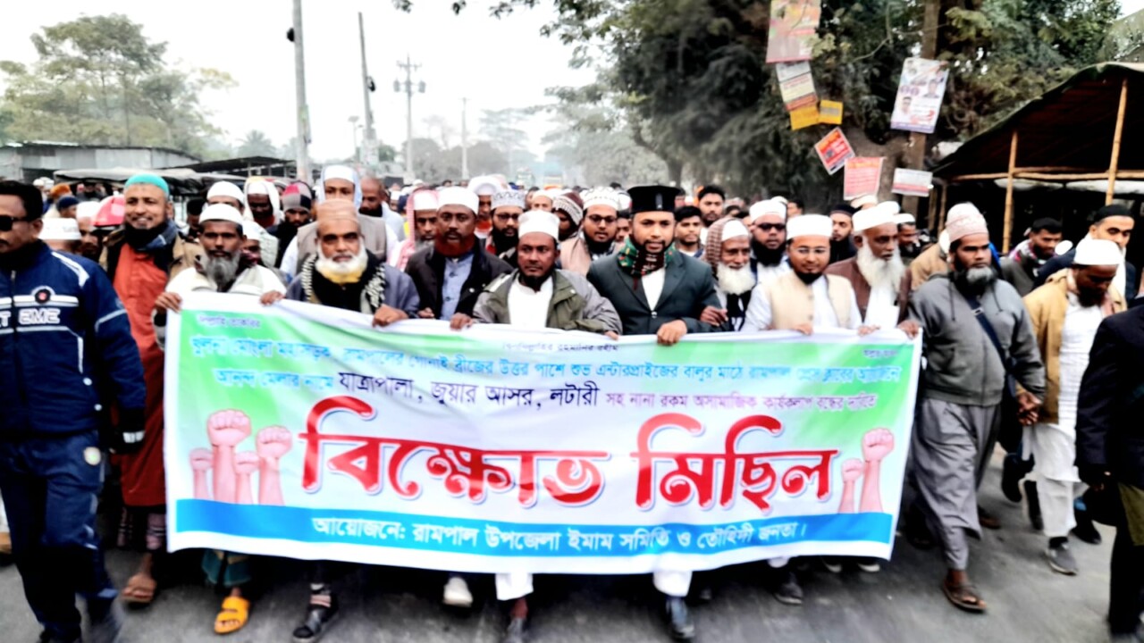 রামপালে যাত্রাপালার নামে অনৈতিক কার্যকলাপ বন্ধের দাবীতে ইমাম সমিতির বিক্ষোভ সমাবেশ