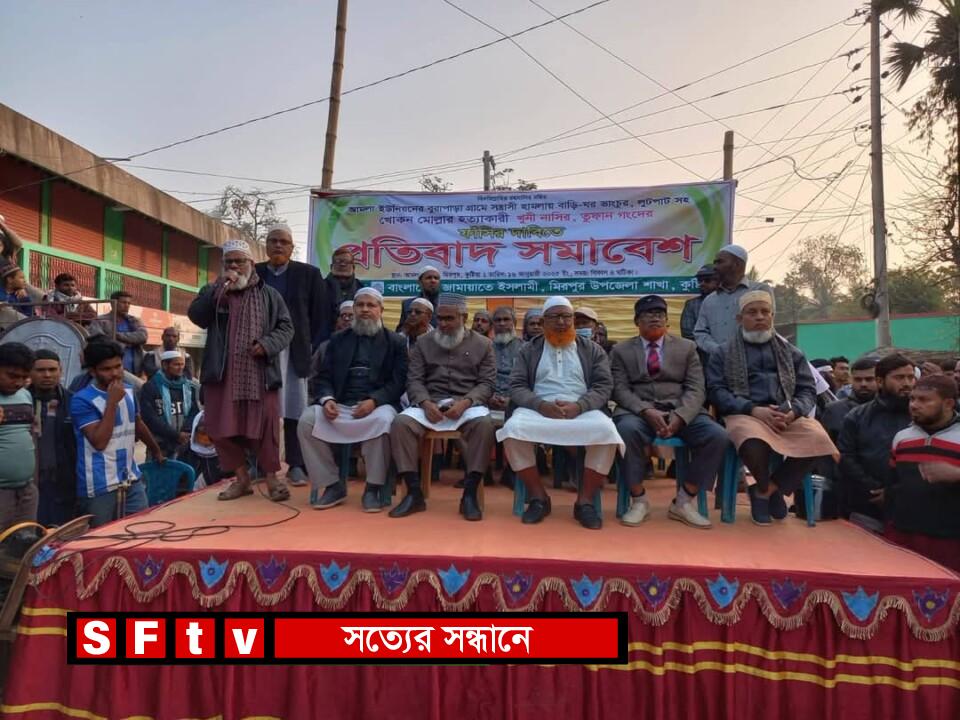 বুরাপাড়া মিটন মাধ্যমিক বিদ্যালয় কমিটি কে কেন্দ্র করে কুষ্টিয়া জেলার মিরপুর উপজেলার বুরাপাড়া গ্রামের পঁচা মোল্লার ছেলে বাংলাদেশ জামায়াতে ইসলামীর কর্মি খোকন মোল্লাকে হত্যা করে স্থানীয় জাসদ থেকে নব্য বিএনপিতে যোগ দান করা নাসির, তুফান গং রা। গত ১২ ই জানুয়ারি রবিবার কুষ্টিয়া জেলার মিরপুর উপজেলার বুরা পাড়া গ্রামে বিএনপির ছদ্মাবরণে জাসদের পরিচিত ক্যাডার বাহিনীর হামলায় স্থানীয় জামায়াতে ইসলামীর ১ জন কর্মী ও ৩৫ জন নেতাকর্মী গুরুতর আহত হন এবং স্থানীয় জামায়াত কর্মীদের ঘরবাড়ীতে হামলা ও লুটপাটের ঘটনা ঘটে। এই ঘটনার তীব্র নিন্দা জানিয়ে আজ ১৬ ই জানুয়ারি বৃহস্পতি বার বিকেল ৪ টায় আমলা বাজারে মিরপুর উপজেলার জামায়াতের হাজারো নেতাকর্মী ও নিহতের পরিবারের সদস্যদের উপস্থিতে এক বিশাল প্রতিবাদ সমাবেশ অনুষ্ঠিত হয়। প্রতিবাদ সমাবেশে বাংলাদেশ জামায়েতে ইসলামীর কুষ্টিয়ার জেলার আমির অধ্যাপক মাওলানা আবুল হাশেম, কুষ্টিয়া জেলার নায়েবে আমির জননেতা আব্দুল গফুর, মিরপুর উপজেলা জামায়াতের আমির খন্দকার রেজাউল করীম, আমলা ইউনিয়ন আমির নাসিম রেজা মুকুল সহ জেলা ও উপজেলা নেতৃবৃন্দরা বক্তব্য রাখেন। বক্তারা সুষ্ঠ তদন্তের মাধ্যমে অভিযুক্ত আসামিদের গ্রেফতার করে সর্বচ্চ শাস্তি ফাঁসির দাবি করেন। উপজেলা প্রসাশনকে ১ মাসের আল্টিমেটাম দিয়ে জেলার নায়েবে আমির আব্দুল গফুর বলেন, এর মধ্যে পুলিশ আসামিদের গ্রেফতার করতে ব্যার্থ হলে আন্দোলন আরো দুর্বার গতিতে করার হুশিয়ার করেন। এছাড়াও জেলা আমির তার বক্তব্যে তার কর্মীদের উদ্যেশ্যে বলেন তারা যেনো আইন নিজ হাতে তুলে না নেন। তাদের কে সবর করে আইনের প্রতি শ্রদ্ধাশীল হয়ে পুলিশ প্রশাসনকে সহযোগীতা করতে নির্দেশ দেন।