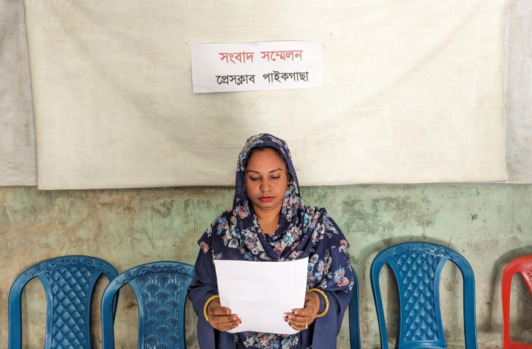খুলনার পাইকগাছায় প্রকাশিত সংবাদের প্রতিবাদে ও উপজেলার ৯ নং চাঁদখালী ইউনিয়ন পরিষদের চেয়ারম্যান শাহজাদা মোঃ আবু ইলিয়াসের সরকারি প্রকল্পের নানা অনিয়ম ও অব্যহত ষড়যন্ত্রের বিরুদ্ধে একই ইউনিয়ন পরিষদের ১,২,৩ নং ওয়ার্ডের সংরক্ষিত মহিলা ইউপি সদস্য জুলেখা খাতুন সংবাদ সম্মেলন করেছেন। এ উপলক্ষে রবিবার সকাল ১১টায় প্রেসক্লাব পাইকগাছার এর কার্যলয়ে উপস্থিত হয়ে লিখিত বক্তব্যে জুলেখা খাতুন বলেন, আমি দীর্ঘদিন ধরে চাঁদখালী ইউনিয়নের ১,২,৩ নং ওয়ার্ডের সংরক্ষিত মহিলা মেম্বার হিসেবে সুনামের সহিত জনসেবা মূলক কাজে নিজেকে নিয়োজিত রেখেছি।