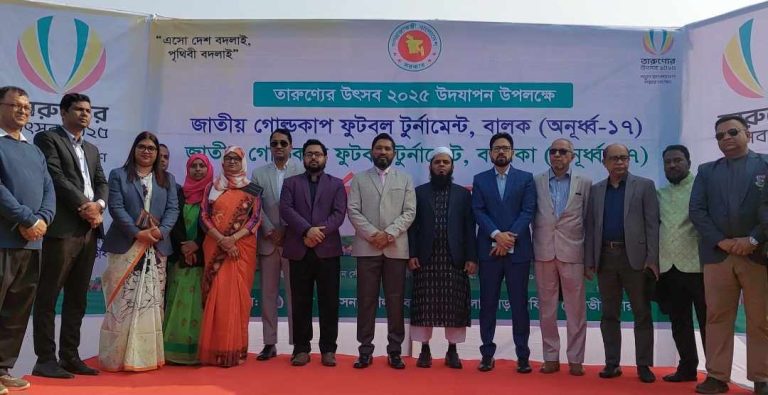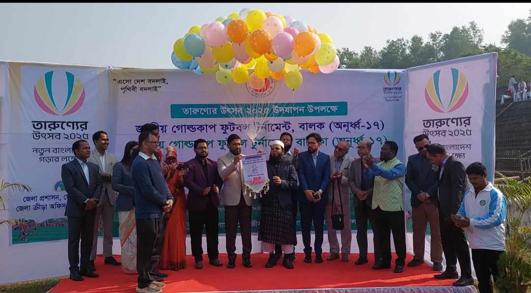 মোহাম্মদ রায়হান,;মৌলভীবাজার জেলা প্রতিনিধিঃ এসো দেশ বদলায় পৃথিবী বদলায় এই স্লোগানকে সামনে রেখে তারুণ্যের উৎসব ২০২৫ উদযাপন উপলক্ষে জাতীয় গোল্ডকাপ ফুটবল টুর্নামেন্ট বালক (অনূর্ধ্ব-১৭) জাতীয় গোল্ডকাপ ফুটবল টুর্নামেন্ট, বালিকা (অনূর্ধ্ব-১৭) শুভ উদ্বোধন করা হয়েছে।