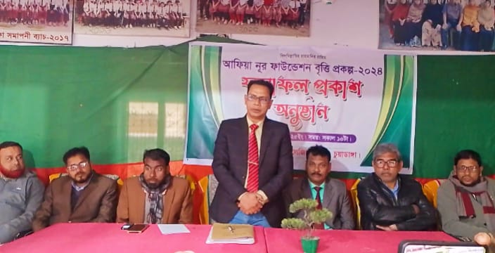 আলমডাঙ্গায় আনুষ্ঠানিকভাবে আফিয়া নূর ফাউন্ডেশনের বৃত্তি পরীক্ষার ফলাফল প্রকাশ করা হয়েছে। শুক্রবার আলমডাঙ্গা কলেজিয়েট স্কুলের হল রুমে সকাল ১০ টায় এ ফলাফল প্রকাশ করা হয় এবং একই সাথে ফাউন্ডেশনের ওয়েবসাইটেও ভার্চুয়ালি উন্মোচন করা হয়। ২০২৪ সালের ডিসেম্বরে সরকারি কলেজ কেন্দ্রে তৃতীয় শ্রেণী থেকে নবম শ্রেণি পর্যন্ত উপজেলার ৫০টি শিক্ষা প্রতিষ্ঠানের ৭৩০ জন শিক্ষার্থী এই বৃত্তি পরীক্ষায় অংশগ্রহণ করেন। পরীক্ষার চুড়ান্ত ফলাফলে বিভিন্ন স্কুলের ১১২জন বৃত্তি পেয়েছে বলে জানা যায়। এর মধ্যে ২৩ জন শিক্ষার্থী ট্যালেন্টপুলে, বাকি সবাই সাধারণ গ্রেডে গেছে বলে জানা যায়। আনুষ্ঠানিকভাবে ফলাফল প্রকাশের সময় আফিয়া নূর ফাউন্ডেশনের প্রধান পৃষ্ঠপোষক নুর মোহাম্মদ টিপু জানান, “প্রতি ১০০ জনের ১০ জনের মেধাবৃত্তি প্রদান করার ইচ্ছা থাকলেও অনেক শিক্ষার্থী খুব ভালো করেছে এজন্য অংশগ্রহণকারী শিক্ষার্থীর ১০% অনুসারে ৭৩ জন হলেও মেধাবৃত্তিকে বৃদ্ধি করে, ১১২ জনকে উত্তীর্ণ করা হয়। যাদের প্রত্যেকেই যোগ্য।এ বছরই বর্ণঢ়্য আয়োজনে বৃত্তিপ্রাপ্ত শিক্ষার্থীদের কে সনদ প্রদানসহ অন্যান্য আনুষ্ঠানিকতা করা হবে “।