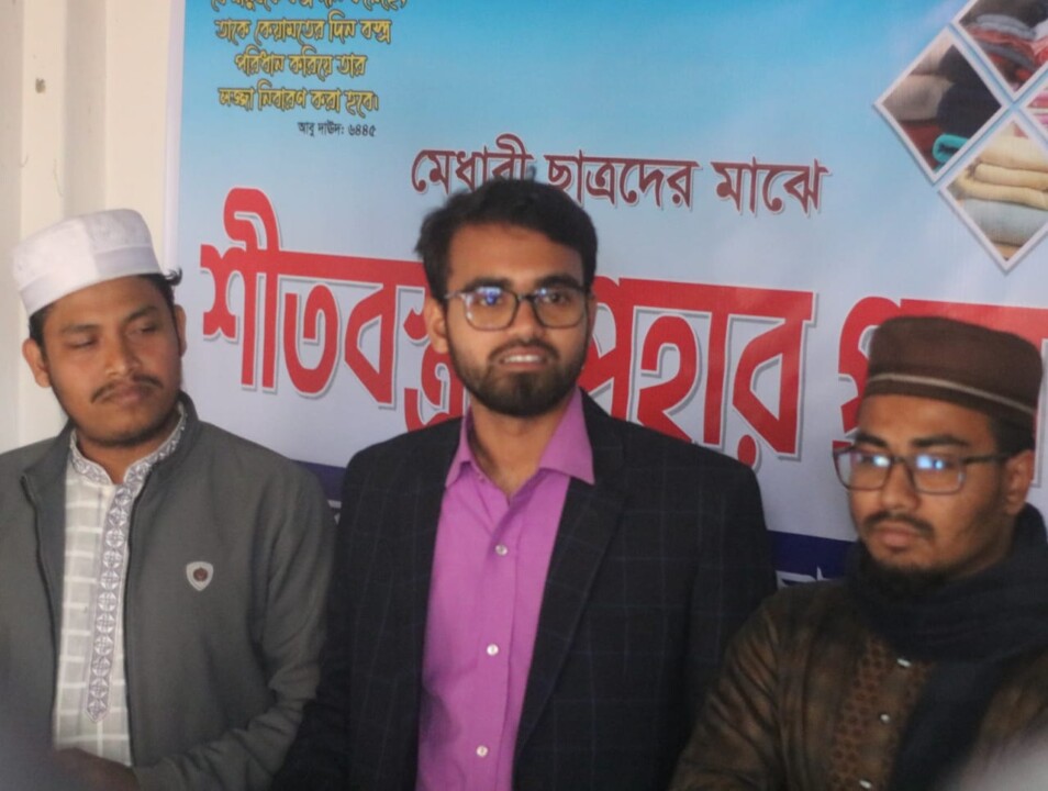 জাবির আহম্মেদ জিহাদ; বাংলাদেশ ইসলামী ছাত্রশিবির, ইসলামপুর উপজেলা শাখার উদ্যোগে মেধাবী শিক্ষার্থীদের মাঝে শীতবস্ত্র (কম্বল) বিতরণ করা হয়েছে। জামালপুরের ইসলামপুরে আয়োজিত এ মানবিক কার্যক্রম অনুষ্ঠিত হয় শুক্রবার, ২৪ জানুয়ারি, বিকাল ৪টায়।