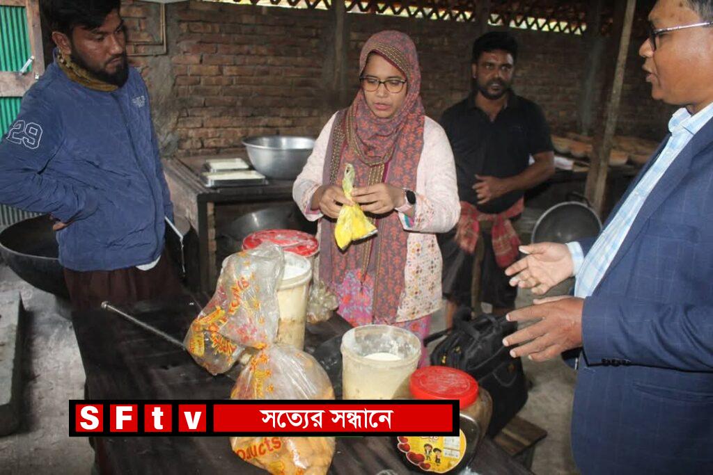 সোমবার বিকালে উপজেলা নির্বাহী অফিসার ও এক্সিকিউটিভ ম্যাজিস্ট্রেট মাহেরা নাজনীনের নেতৃত্বে পৌর সদরের দধি ঘরে অস্বাস্থ্যকর পরিবেশে খাদ্য উৎপাদন, নিষিদ্ধ কাপড়ের রং সহ ফ্লেভার খাদ্যদ্রব্যে মিশ্রনের অপরাধে ভোক্তা অধিকার সংরক্ষণ আইন ২০০৯ এর ৪২ ও ৫৩ ধারায় কারখানা মালিক বিশ্বজিৎ কে ৮ হাজার টাকা জরিমানা আদায় করা হয়।অভিযান পরিচালনাকালে অন্যদের মধ্যে উপস্থিত ছিলেন, উপজেলা স্যানিটারী ও নিরাপদ খাদ্য কর্মকর্তা উদয় কুমার মন্ডল, পেশকার মোঃ ইব্রাহিম হোসেন ও আনসার সদস্যবৃন্দ। এবিষয়ে উপজেলা নির্বাহী অফিসার ও এক্সিকিউটিভ ম্যাজিস্ট্রেট মাহেরা নাজনীন জানান, জনস্বার্থে উপজেলা প্রশাসনের এ ধরনের অভিযান চলমান রয়েছে এবং থাকবে।