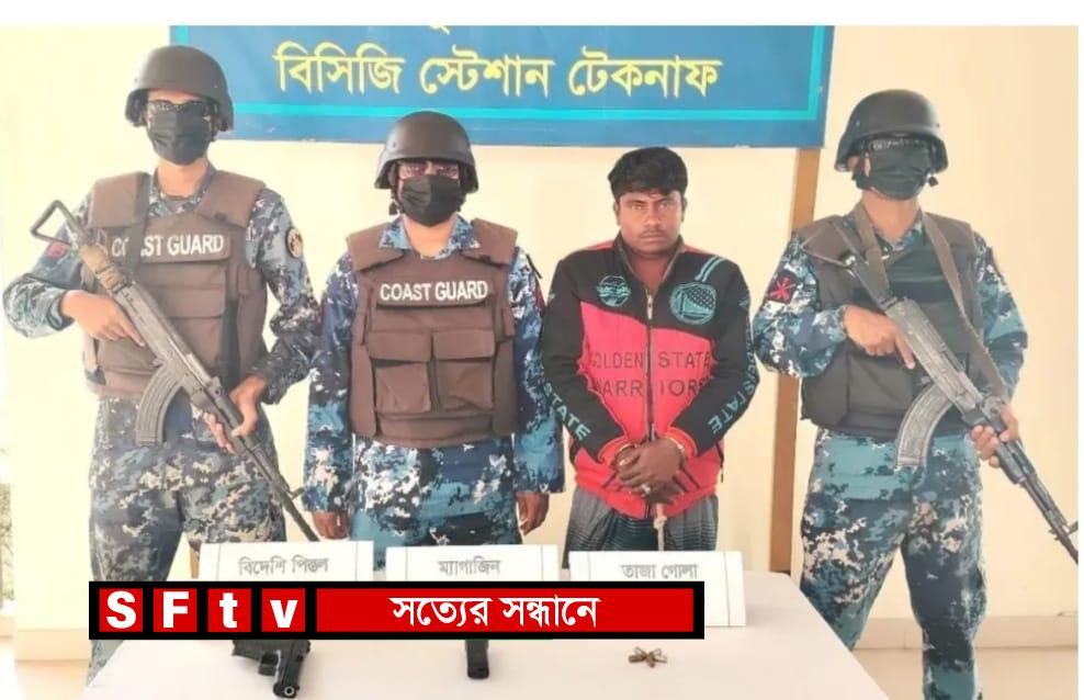 লেফটেন্যান্ট কমান্ডার সিয়াম বলেন, মঙ্গলবার মধ্যরাতে শাহপরীর দ্বীপের দক্ষিণ পাড়ায় এক যুবক সশস্ত্র অবস্থায় অপরাধ সংঘটনের জন্য অবস্থান করছে। এমন খবরে কোস্টগার্ডের একটি দল সেখানে অভিযান চালায়।কোস্টগার্ড সদস্যরা ঘটনাস্থলে পৌঁছলে উপস্থিতি টের পেয়ে সন্দেহজনক এক ব্যক্তি দৌঁড়ে পালানোর চেষ্টা চালায়। এসময় ধাওয়া দিয়ে তাকে আটক করতে সক্ষম হয় কোস্ট গার্ড ।পরে আটক যুবকের দেহতল্লাশী করে একটি নাইন এমএম বিদেশি পিস্তল, একটি ম্যাগজিন ও পাঁচটি গুলি পাওয়া যায়।“আটক যুবককের বিরুদ্ধে সংশ্লিষ্ট আইনে টেকনাফ থানায় মামলা করা হয়েছে বলেও জানান, কোস্ট গার্ডের কর্মকর্তা।