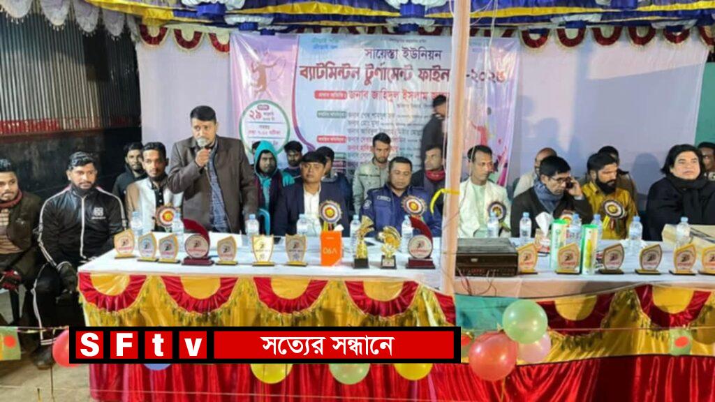সিংগাইরে সায়েস্তা ইউনিয়ন গণ অধিকার পরিষদের আয়োজনে ব্যাডমিন্টন সিজন-১ টুর্ণামেন্টের ফাইনাল খেলা অনুষ্ঠিত হয়েছে।বুধবার (২৯ জানুয়ারি) রাত সাড়ে ৭ টারদিকে উপজেলার সায়েস্তা ইউনিয়নের লক্ষীপুর উঁচা ব্রিজ এলাকায় এ খেলা অনুষ্ঠিত হয়। এতে ৮নং ওয়ার্ড ২-১ সেটে ৭নং ওয়ার্ডকে পরাজিত করে বিজয়ী হয়।মানিকগঞ্জ জেলা কল্যাণ সমিতির সভাপতি জনাব সোলায়মান দেওয়ান বিকাশের সঞ্চালনায় উক্ত অনুষ্ঠানে সভাপতিত্ব করেন জনাব আনিস মোল্লা।