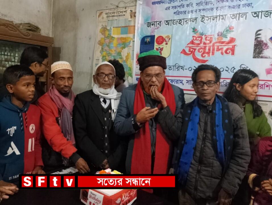 আজাদ হোসেন আওলাদ মিয়া : আজ কবি সাহিত্যিক নাট্যকার আজহারুল ইসলাম আল আজাদের কেক কেটে ৫৩তম জন্মদিন পালিত হয়। কিশোরগঞ্জ উপজেলা সহ দেশের বিভিন্ন স্হানে পালন করা হয়।যায়যায়দিন ফ্রেন্ডস ফোরাম ও সাহিত্য শিখা পরিষদ কিশোরগঞ্জ, নীলফাগারী এর সভাপতি কবি, সাহিত্যিক, শিক্ষক ও টইটই সাহিত্য পত্রিকার প্রধান সম্পাদক বাংলা বাজার ঢাকা এর জন্মদিন পালিত হয়। প্রথমে লিডারশিপ ২য় ব্যাচ ও দ্বিতীয়তে যায়যায়দিন ফ্রেন্ডস ফোরাম এবং সাহিত্য শিখা পরিষদে উদ্দ্যেগে এ সময় উপস্থিত ছিলেন উপজেলা রিপোর্টাস ইউনিটির সভাপতি আব্দুল মান্নান, সাহিত্য শিখা পরিষদে সাধারণ সম্পাদক কবি ডাঃ প্রকাশ চন্দ্র, কবি আব্দুল লতিফ প্রোমাণিক, উপজেলা রিপোর্টাস ইউনিটির সহ সভাপতি কাওছার হামিদ,কবি আব্দুল আলিম বাঙালি সহ প্রমুখ।কবি আজহারুল ইসলাম আল আজাদ ১৯৭১ সালে নীলফামারী জেলায় জন্মগ্রহন করেন। তিনি ছোটবেলা থেকে লেখা লেখির সাথে জড়িত। নাটকঃ মেঘের কোলে রোদ হেসেছে, আলোর পথে, ছোটজাত, অভাগিনী আমিনা। কাব্যঃ নীলে খুঁজি কাব্যরস, নীল জীবনের গান, গদ্যময় জীবনের পদ্য, নীলকন্ঠ অজেয় পরাজয়, উপন্যাসঃ ইচ্ছে, বিষন্ন প্রহর, বিরহের যাত্রা, তিনি সাহিত্য শিখা পরিষদের সভাপতি ও বিভাগীয় লেখক সংসদ নীলফামারী সহসভাপতি টইটই সাহিত্য পত্রিকার প্রধান সম্পাদক। লেখা লেখির মাঝে তিনি বেঁচে থাকতে চান আল্লাহ ভরসা।