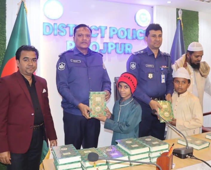 পিরোজপুরে পুলিশ সুপারের উদ্যোগে কুরআন শরীফ বিতরন ।