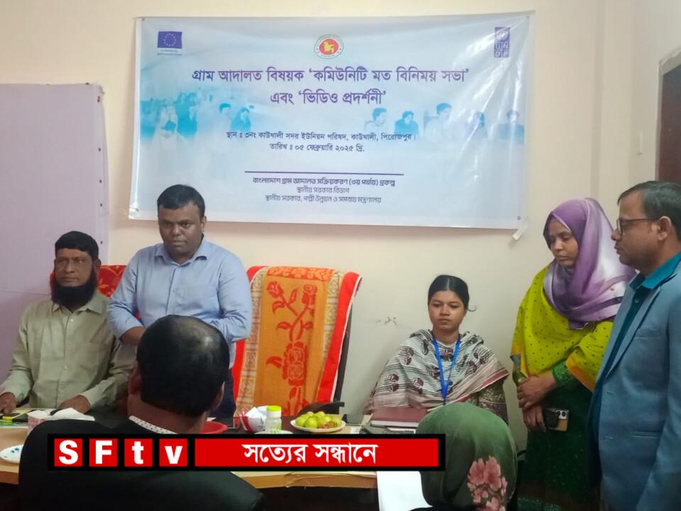 মোঃ নুরুজ্জামান খোকন : পিরোজপুরের কাউখালী উপজেলায় ৩নং সদর ইউনিয়ন সভাকক্ষে, বাংলাদেশ গ্রাম আদালত সক্রিকরন (৩য় পর্যায়) প্রকল্প স্থানীয় সরকার বিভাগ,পল্লী উন্নয়ন মন্ত্রণালয়ের উদ্যোগে কমিউনিটি মত বিনিময় সভা এবং ভিডিও প্রদর্শনী অনুষ্ঠিত হয়।