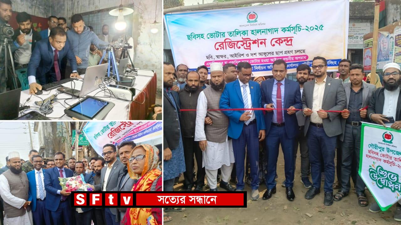 মোঃ মনিরুল ইসলাম খান : ময়মনসিংহের গৌরীপুরে ছবিসহ ভোটার তালিকা হালনাগাদের শুভ উদ্বোধন করেন গেীরীপুর উপজেলা নির্বাহী অফিসার জনাব এম সাজ্জাদুল হাসান। ০৫ ফেব্রুয়ারী ২০২৫ রোজ বুধবার গৌরীপুর উপজেলার ১০ নং সিধলা ইউনিয়ন পরিষদ এর ছবিসহ ভোটার তালিকা হালনাগাদের রেজিস্ট্রেশন কেন্দ্র উদ্বোধন এর মাধ্যমে গৌরীপুরের ভোটার হালনাগাদের কার্যক্রমের সূচনা হয়। উক্ত হালনাগাদ রেজিস্ট্রেশন কেন্দ্রে ছবি, স্বাক্ষর, আইরিশ ও দশ আঙ্গুলের ছাপ গ্রহণ করা চলমান। এসময় উপস্থিত ছিলেন গৌরীপুর উপজেলা সমাজসেবা অফিসার ও ১০ নং সিধলা ইউনিয়ন পরিষদের দায়িত্বপ্রাপ্ত প্রশাসক জনাব মাহফুজ ইবনে আইয়ুব, গৌরীপুর উপজেলা নির্বাচন অফিসার জনাব মোহাম্মদ ফারুক মিয়া।
