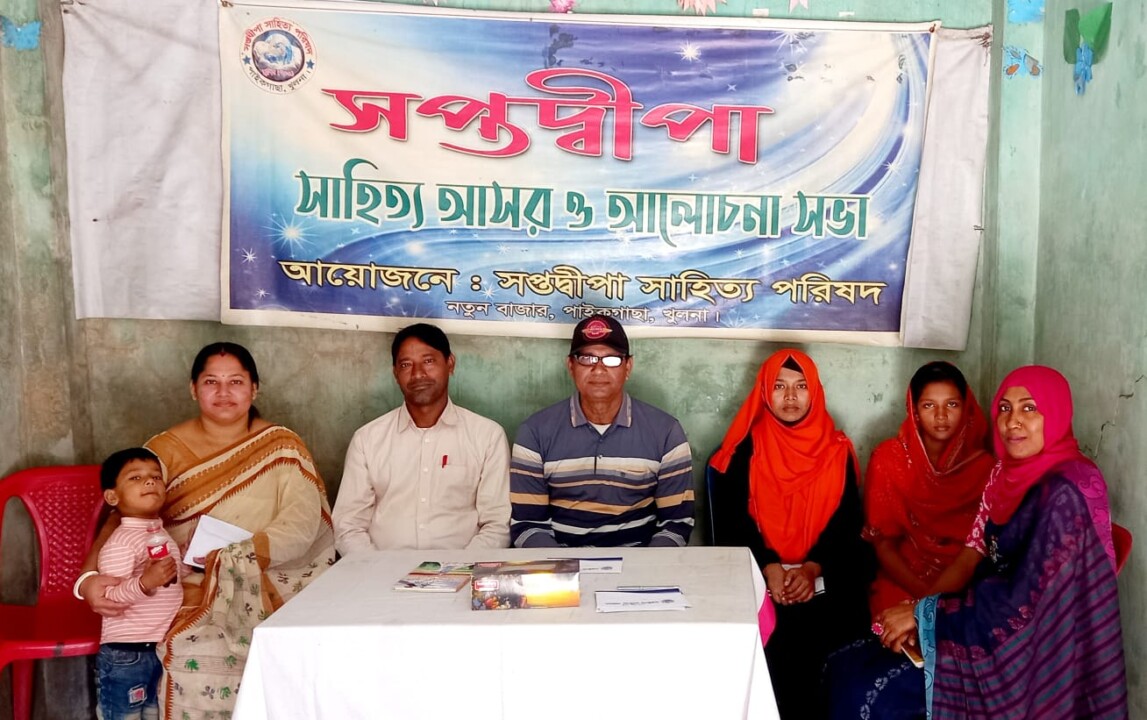 পাইকগাছায় সপ্তদ্বীপা সাহিত্য পরিষদের পাক্ষিক সাহিত্য আসর ও আলোচনা সভা অনুষ্ঠিত হয়েছে। ৭ ফেব্রুয়ারি শুক্রবার সকাল সাড়ে ১০টায় পাইকগাছার নতুন বাজারস্থ সংগঠনের কার্যালয়ে অনুষ্ঠিত সাহিত্য আসরে সভাপতিত্ব করেন, সংগঠনের সভাপতি লেখক ও সাংবাদিক প্রকাশ ঘোষ বিধান।