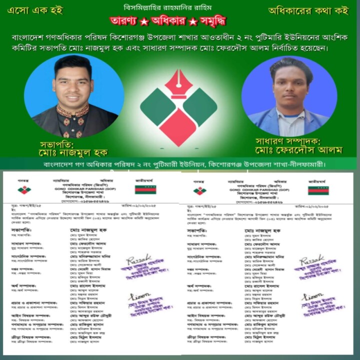 গণ অধিকার পরিষদ পুটিমারী ইউনিয়ন শাখার নব গঠিত কমিটির মেয়াদকাল ৩ মাস।