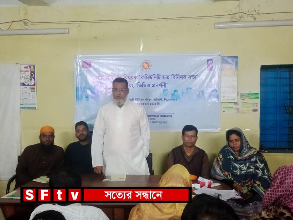 মোঃ নুরুজ্জামান খোকন : পিরোজপুরের কাউখালী উপজেলায় ২ নং আমরাজুড়ী ইউনিয়ন সভাকক্ষে,বাংলাদেশ গ্রাম আদালত সক্রিকরন (৩য় পর্যায়) প্রকল্প স্থানীয় সরকার বিভাগ, পল্লী উন্নয়ন মন্ত্রণালয়ের উদ্যোগে কমিউনিটি মত বিনিময় সভা এবং ভিডিও প্রদর্শনী অনুষ্ঠিত হয়।
