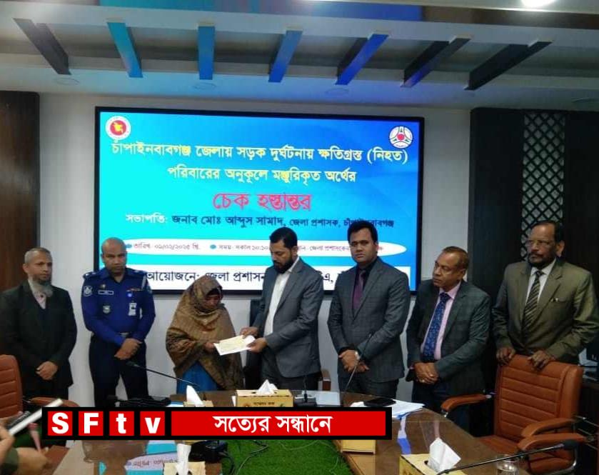 বিআরটিএ’র চাঁপাইনবাবগঞ্জ  সার্কেল এর আয়োজনে এ অনুষ্ঠানে জেলা প্রশাসক মোঃ আব্দুস সামাদ  এর সভাপতিত্বে উপস্থিত ছিলেন অতিরিক্ত জেলা প্রশাসক রাজস্ব,অতিরিক্ত জেলা ম্যাজিস্ট্রেট, বিআরটিএর সহকারী পরিচালক ইঞ্জিনিয়ার শাহজামাল হক  , মোটরযান পরিদর্শক বৃন্দ, ও সাংবাদিকবৃন্দ। জানা যায়, চাঁপাইনবাবগঞ্জ  জেলার বিভিন্ন স্থানে পৃথক সময়ে সড়ক দুর্ঘটনায় নিহত  ০৫ জনের পরিবারের মনোনীত সদস্যদের মাঝে এই চেক বিতরণ করা হয়। জেলা প্রশাসক বিআরটিএ, চাঁপাইনবাবগঞ্জ  সার্কেলের সবাইকে ধন্যবাদ জ্ঞাপন করেন। এসময় বিআরটিএ কর্তৃপক্ষ আরও জানায়, দুর্ঘটনা কবলিত হওয়ার ৩০ দিনের মধ্যে উপযুক্ত প্রমানাদিসহ নির্ধারিত ফরমে নিহত কিংবা গুরুতর আহতদের পরিবারের পক্ষ থেকে আবেদন করা হলে, তা ট্রাস্টিবোর্ডে যাছাই-বাছাই পূর্বক অর্থ সহযোগীতা মঞ্জুর করা হয়।