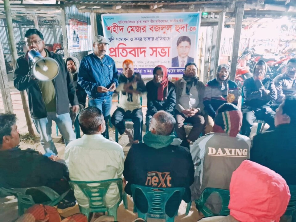 আলমডাঙ্গার হাটবোয়ালিয়ায় মেজর হুদাকে খুনি সম্বোধন ও কবর ভাঙ্গার প্রতিবাদে প্রতিবাদ সভা