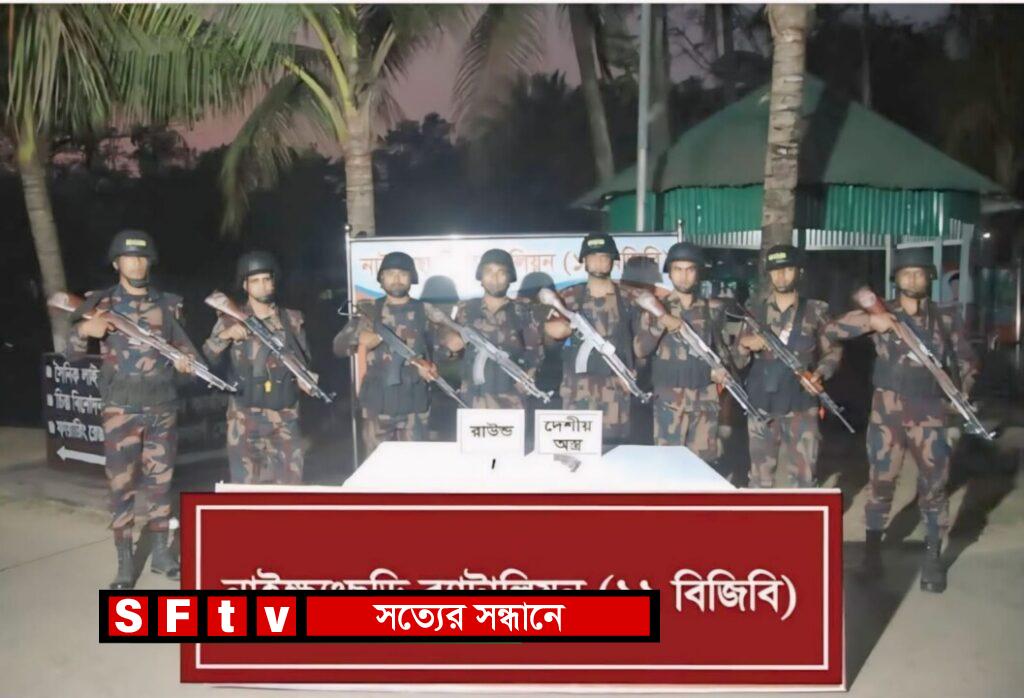 জামাল উদ্দীন : বান্দরবানের নাইক্ষ্যংছড়ি উপজেলার নাইক্ষ্যংছড়ি সদর ইউনিয়নের ভাল্লুকখাইয়া রাবার বাগান এলাকায় বিজিবি’র অভিযানে অবৈধ অস্ত্র ও গুলি উদ্ধার করা হয়েছে। বুধবার (১২ফেব্রুয়ারি ) বিকাল ৫ টার দিকে নাইক্ষ্যংছড়ি ব্যাটালিয়ন (১১ বিজিবি)’র অধিনায়কের নেতৃত্বে ব্যাটালিয়ন অধিনস্থ ভাল্লুকখাইয়া বিওপি’র একটি টহল দল গোপন সংবাদের ভিত্তিতে নাইক্ষ্যংছড়ির সদর ইউনিয়নের ভাল্লুকখাইয়া রাবার বাগান এলাকায় গমন করেন এবং উক্ত স্থানে তল্লাশি করে জঙ্গলের ভিতর থেকে ১টি অবৈধ দেশীয় অস্ত্র ও ১ রাউন্ড গুলি মালিকবিহীন অবস্থায় উদ্ধার করেন। উদ্ধারকৃত ১টি অস্ত্র এবং ১ রাউন্ড গুলি নাইক্ষ্যংছড়ি থানায় হস্তান্তর ও পলাতক আসামির বিরুদ্ধে মামলার কার্যক্রম প্রক্রিয়াধীন রয়েছে এমনটাই জানিয়েছেন,নাইক্ষ্যংছড়ি ১১বিজিবি’র অধিনায়ক লে. কর্নেল এস কে এম কফিল উদ্দিন কায়েস।তিনি বলেন, সীমান্ত এলাকায় অবৈধ অস্ত্র উদ্ধারের জন্য আভিযানিক ব্যবস্থা এবং যে কোন ধরনের সন্ত্রাসী কার্যক্রম রোধে বিজিবি’র এ ধরনের কার্যক্রম ও তৎপরতা অব্যাহত থাকবে।
