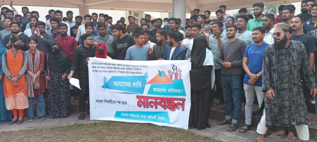 গত ১৩ ফেব্রুয়ারি (বৃহস্পতিবার) দুপুরে শিক্ষার্থীরা কলেজ চত্বর থেকে মূল ফটকের সামনে এই মানববন্ধন অনুষ্ঠান আয়োজন করেন। এতে শতাধিক শিক্ষার্থী অংশগ্রহণ করেন। তারা ব্যানার হাতে নিয়ে বিভিন্ন স্লোগান দেন এবং বিশ্ববিদ্যালয় কর্তৃপক্ষের দৃষ্টি আকর্ষণের চেষ্টা করেন।